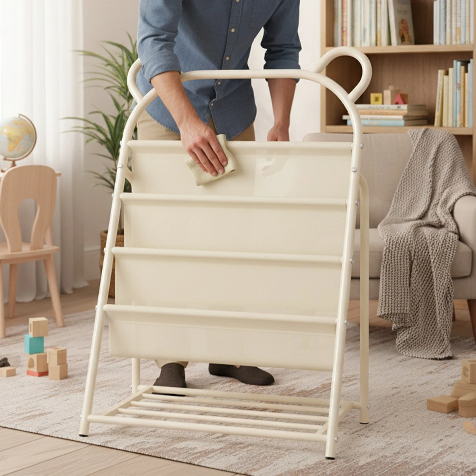 4. Easy-to-Clean Surface for Busy Areas: Crafted from quality material, its smooth, wipeable surface keeps classroom libraries neat. Parents and teachers will appreciate how effortlessly this metal book rack storage maintains a polished appearance.