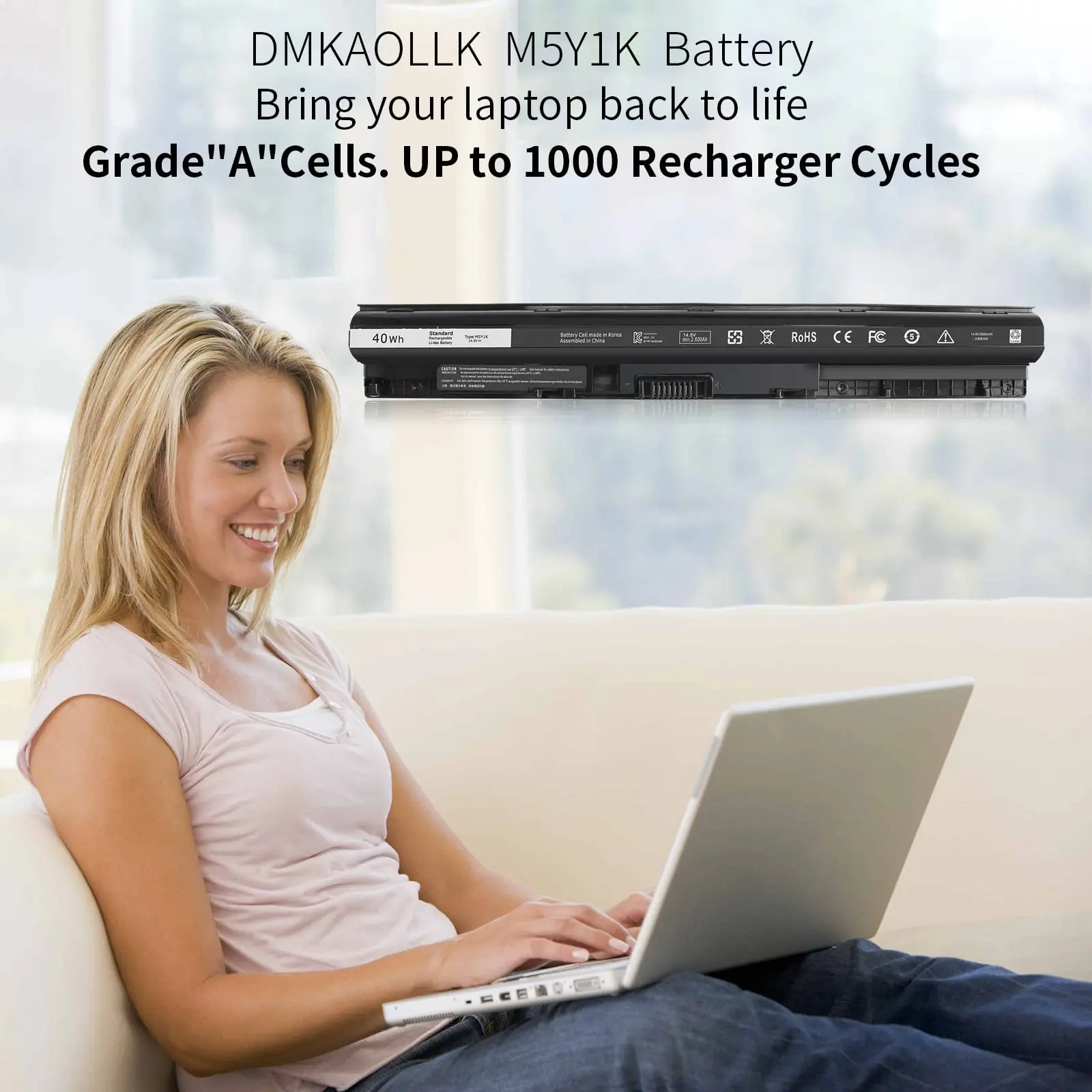 Compatible with Dell Inspiron 14-3451, 14-3452, 14-3458, 14-3459, 14-3462, 14-3467, 14-5451, 14-5452, 14-5458, 14-5459, 14-5455, 15-3551, 15-3552, 15-3558, 15-3559, 15-3565, 15-3567, 15-5551, 15-5552, 15-5555, 15-5558, 15-5559, 15-5758, 17-5755, 17-5756, 17-5758, 17-5759 Laptop Notebook Battery. Dell 40Wh Standard Rechargeable Li-ion Battery Type M5Y1K 14.8V.