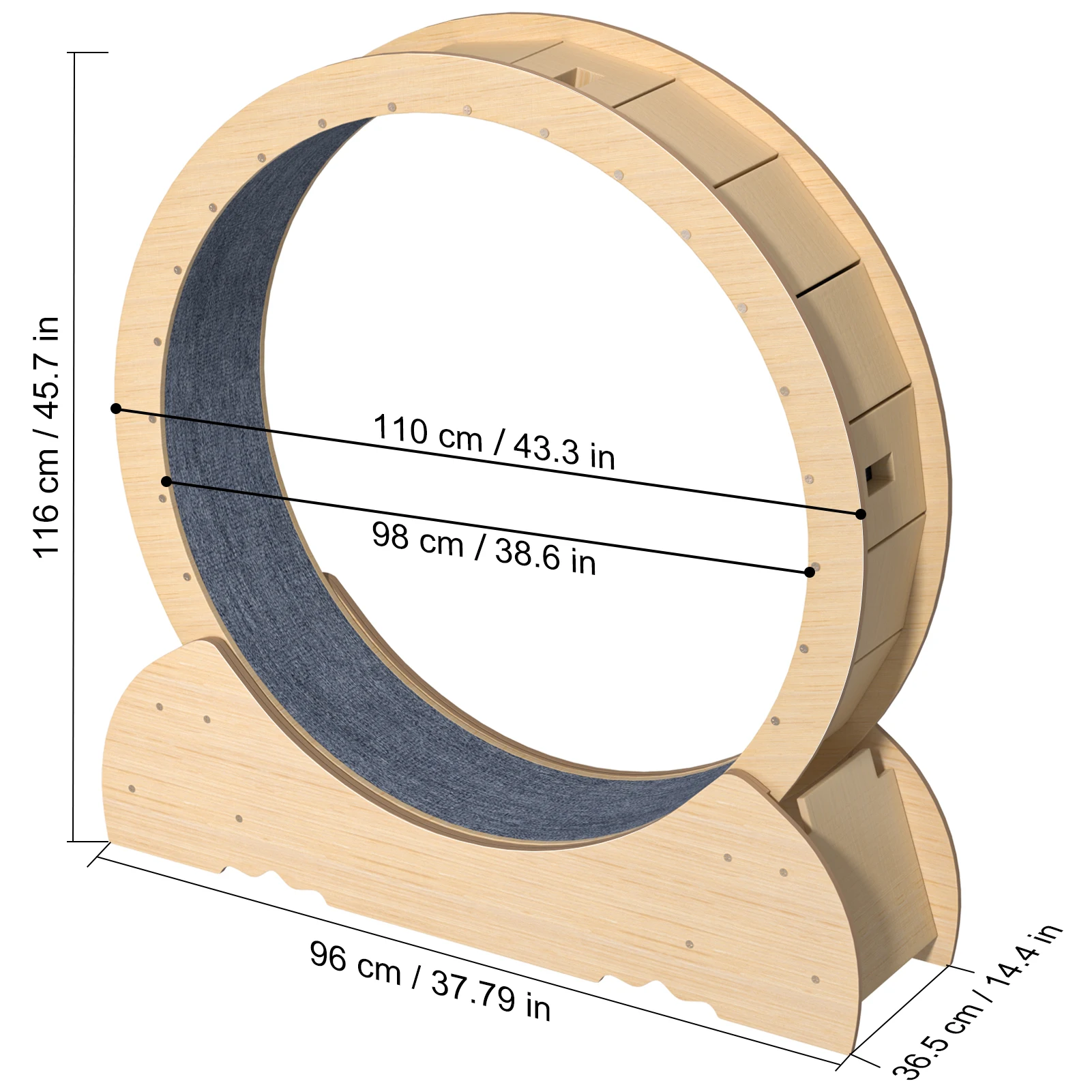 Premium Material: Improved wooded silent wheels make the treadmill quieter without disturbing neighbors. No risk to the cat’s paws. The base edge has the same height as the wheel edge, and only less 6mm gap between them, which can not only ensure the smooth running of this large wheel but also avoid the risk of the cat pinching its feet when walking and rolling in it, ensuring the safety of your cat.