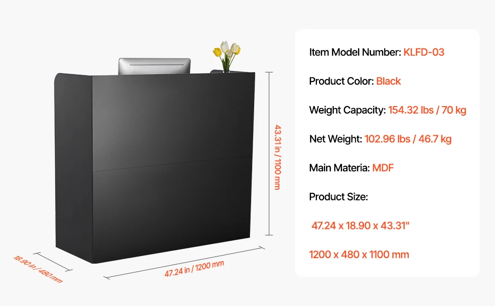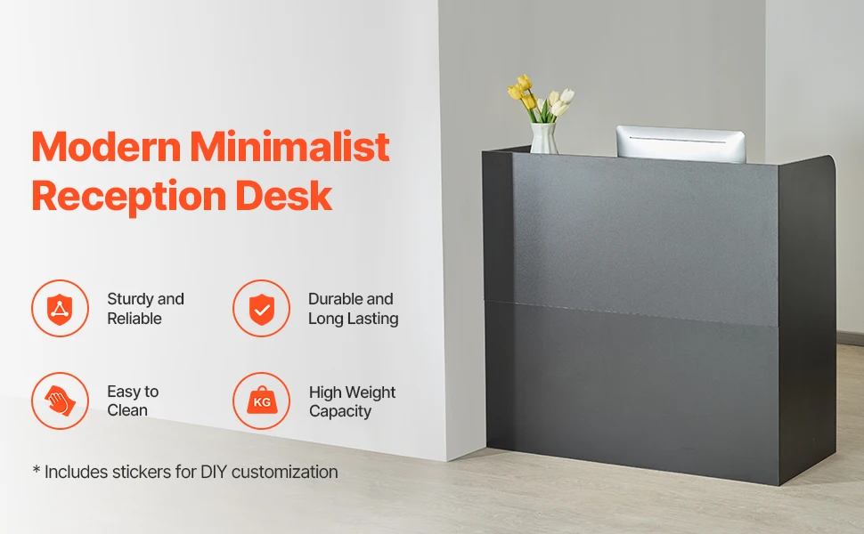 Sturdy and Reliable Construction: This reception desk is made from high-density fiberboard MDF with a smooth, wear-resistant, and waterproof surface that is suitable for long term use and easier maintenance. The desktop and frame are structurally stable with strong weight-bearing support.