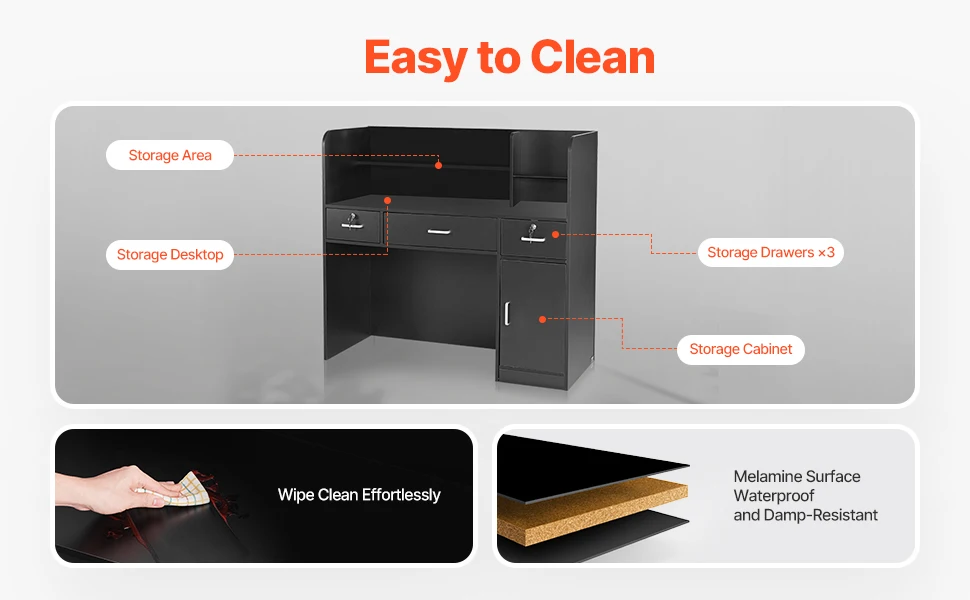 This retail desk is made from wear-resistant and waterproof materials that are easy to wipe down and maintain, helping reduce cleaning effort.