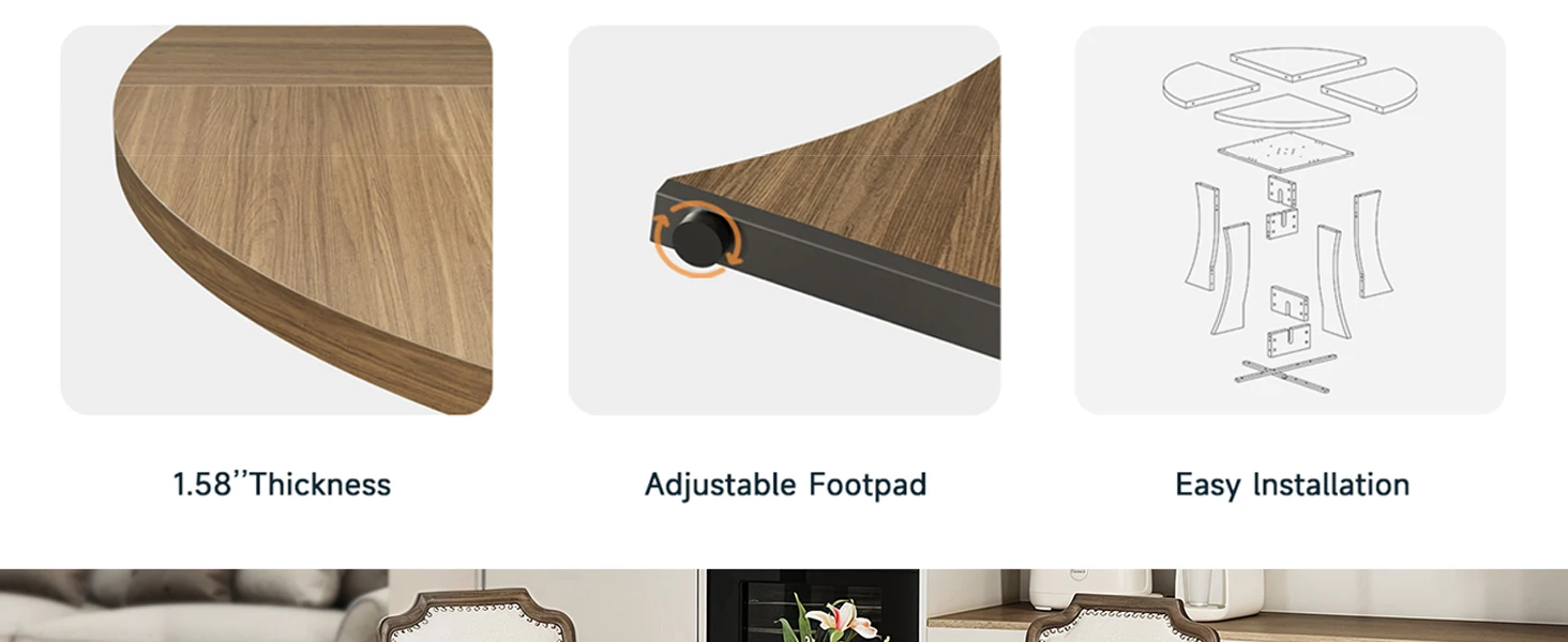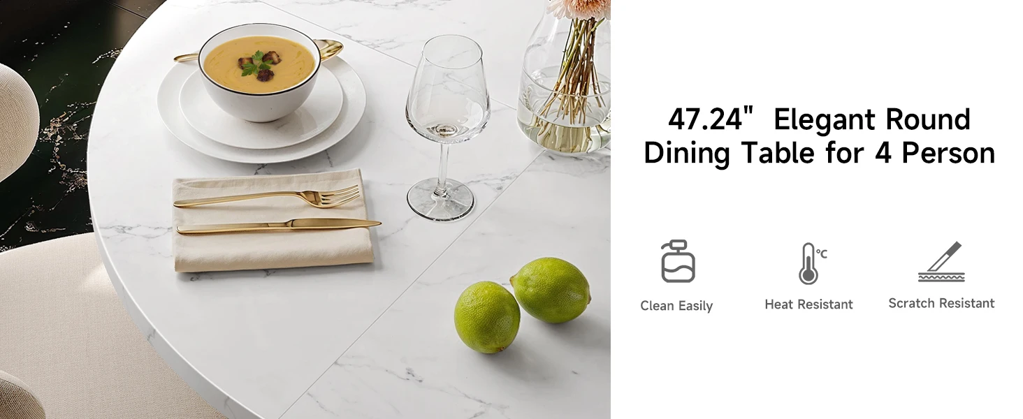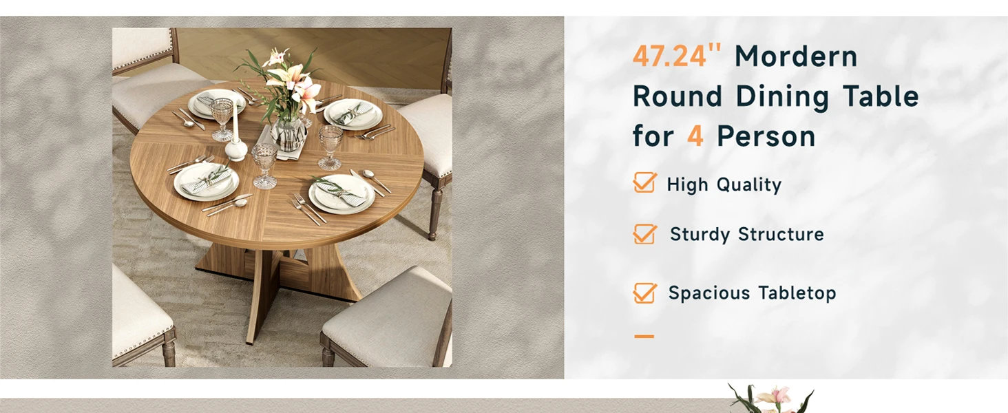 - Perfect for family dinners: The generous 47.24-inch diameter tabletop provides ample space for tableware, food, and drinks. It comfortably seats 4 to 6 people, making it ideal for family gatherings and enjoyable mealtimes.