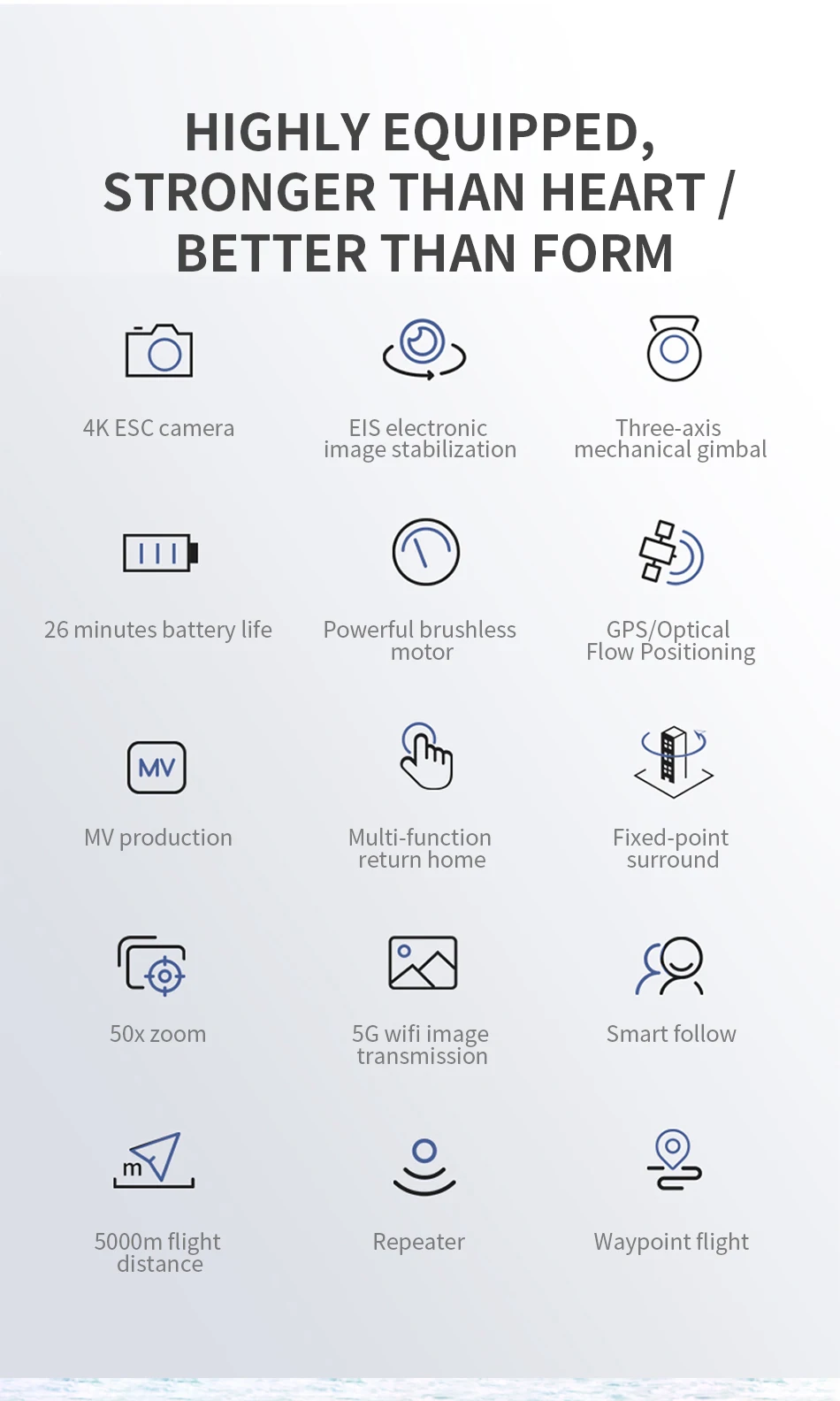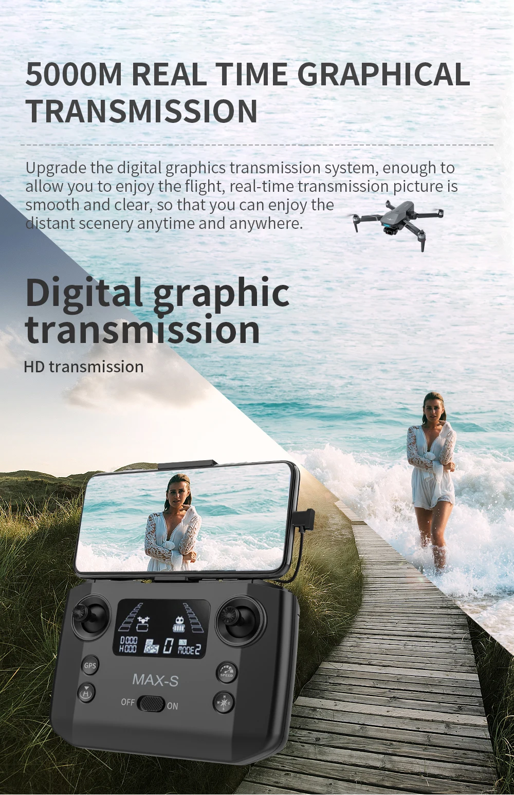 - Upgraded 5G + Digital Image Transmission System provides smooth and clear real-time transmission images, allowing you to enjoy the view from afar anytime, anywhere.