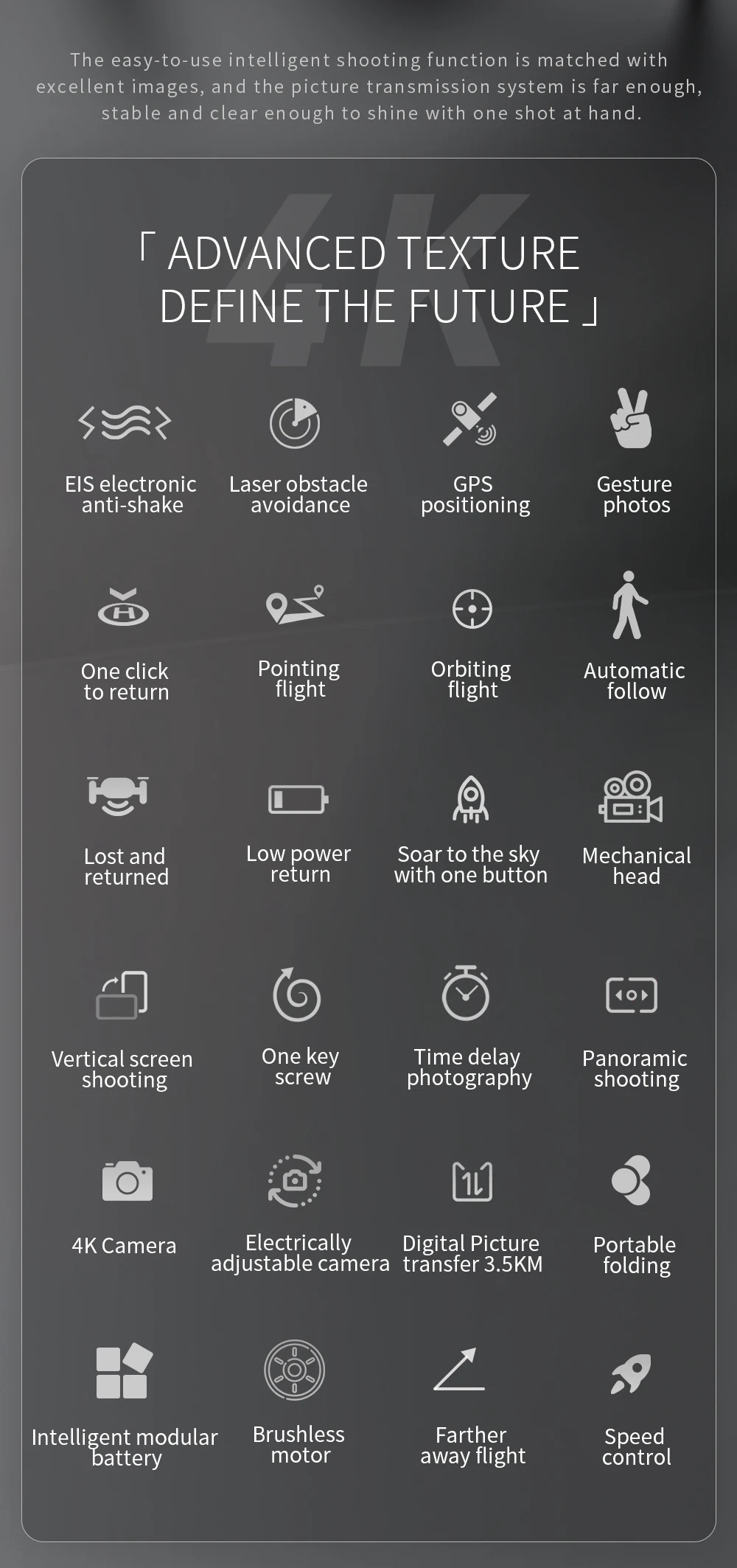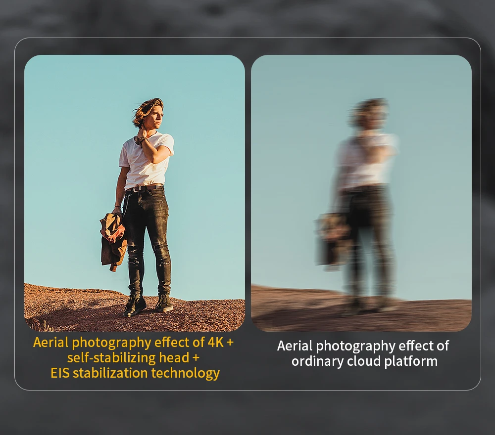 - Camera: 2-Axis Electronic Stabilization Gimbal Real 4K Camera