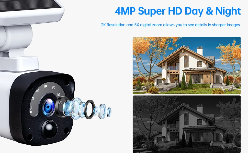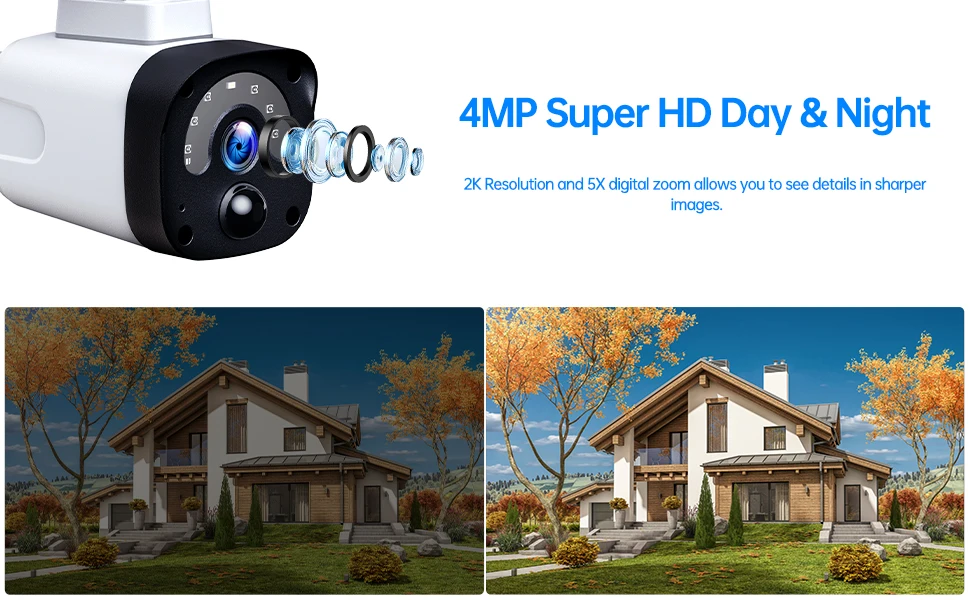 - Captures sharp 4MP (HD 2560*1440P) images within a 120° wide view.