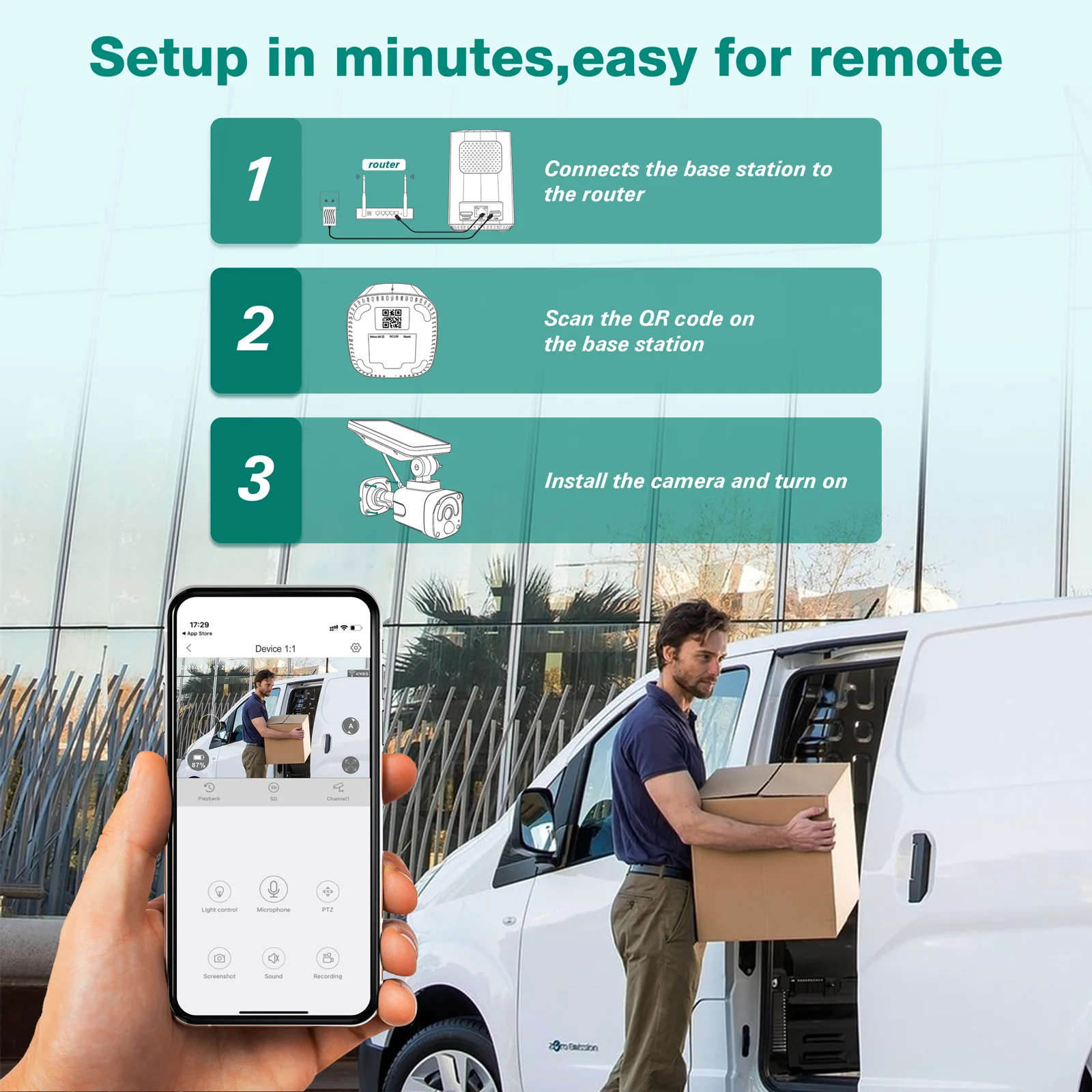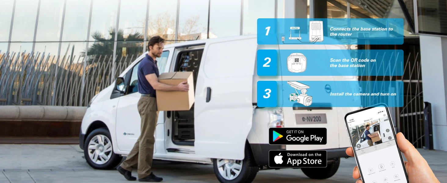 - No need to worry about power and network cables when installing. Simply install the cameras at the desired location without any wires.