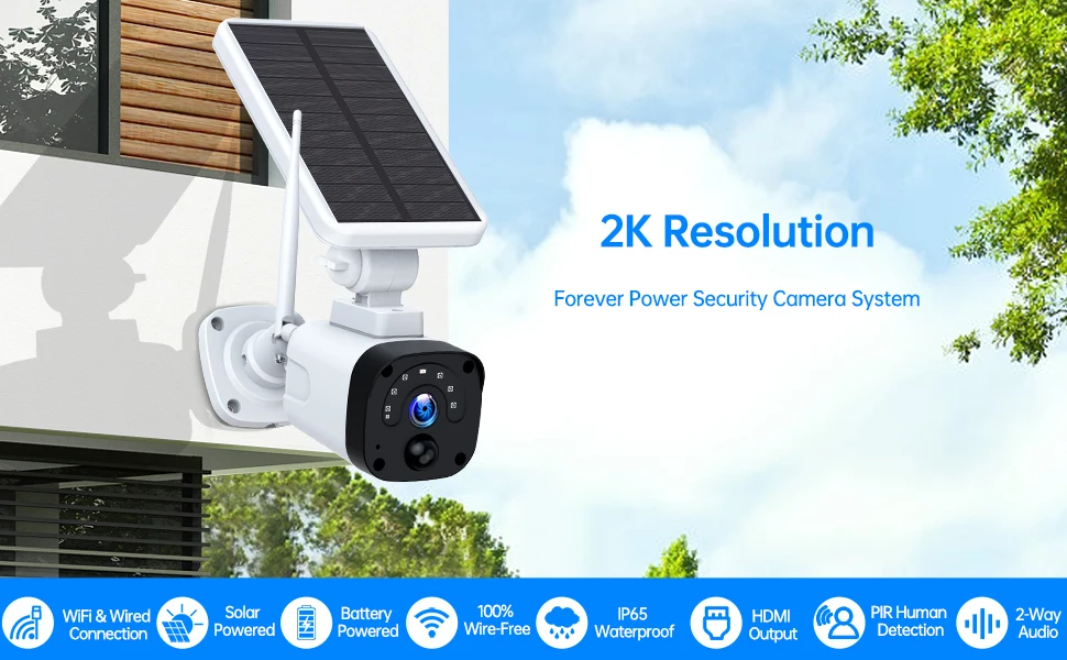 - Equipped with a 2W solar panel and a built-in 6700mAh rechargeable battery to provide an uninterrupted power supply.