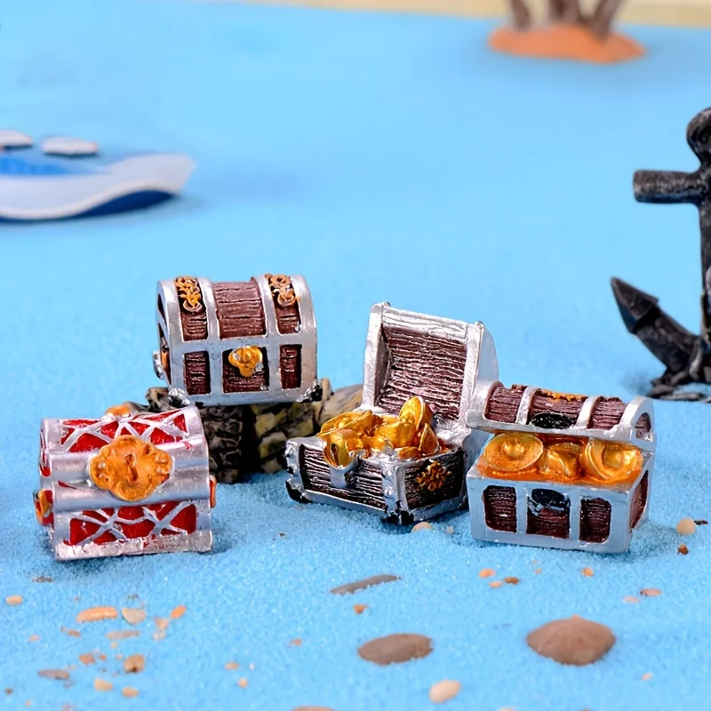 Enhance your fish tank’s underwater aesthetic with this set of 4pcs Treasure Chest Mini Resin Ornaments. Designed to bring a touch of mystery and charm, these decorations mimic classic treasure chests, adding an adventurous element to your aquatic environment.