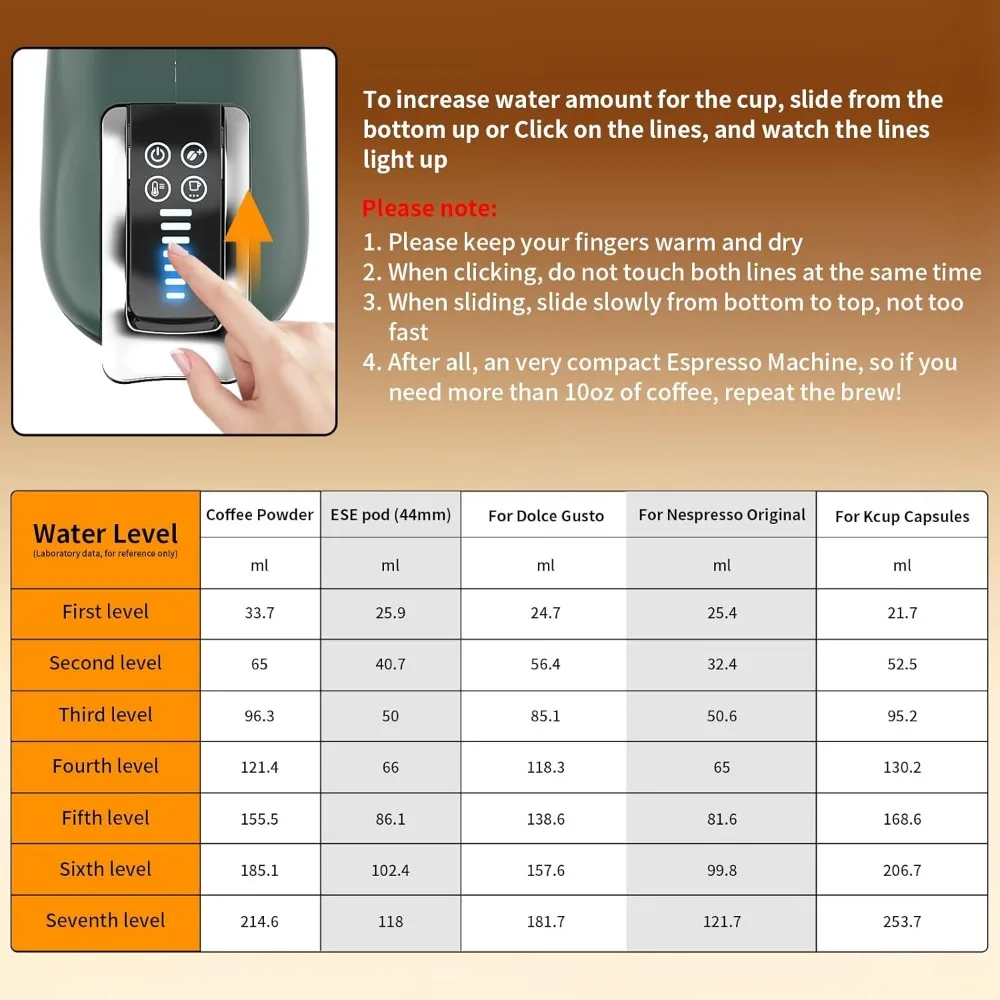 - 5-in-1 espresso capability: 19-bar pressure and a 1400W rapid-heating system brew crema-topped espresso in about 30 seconds. Works with multiple capsule formats and ESE 44 mm pods, and supports ground coffee.