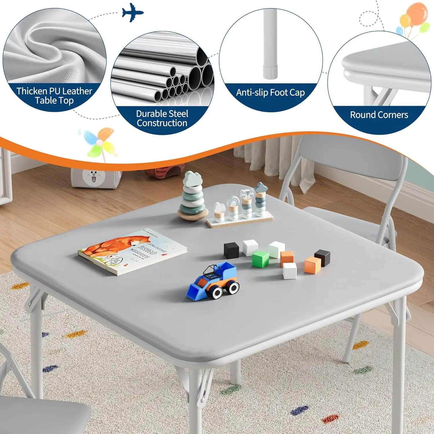 - Premium materials: Built with a sturdy metal frame and a painted surface that is rust-resistant and durable. The tabletop and chair surfaces feature thick PU leather that is soft, skin-friendly, waterproof, stain-resistant, and easy to wipe clean.