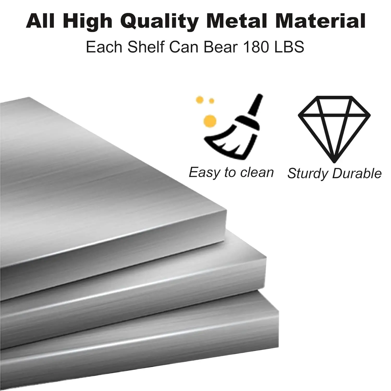 This is a metal bookshelf, not a wooden shelf. It can hold much more weight than a wooden bookshelf. Each shelf can hold up to 180 pounds. As a metal bookshelf, it has a longer service life and creates no pollution.