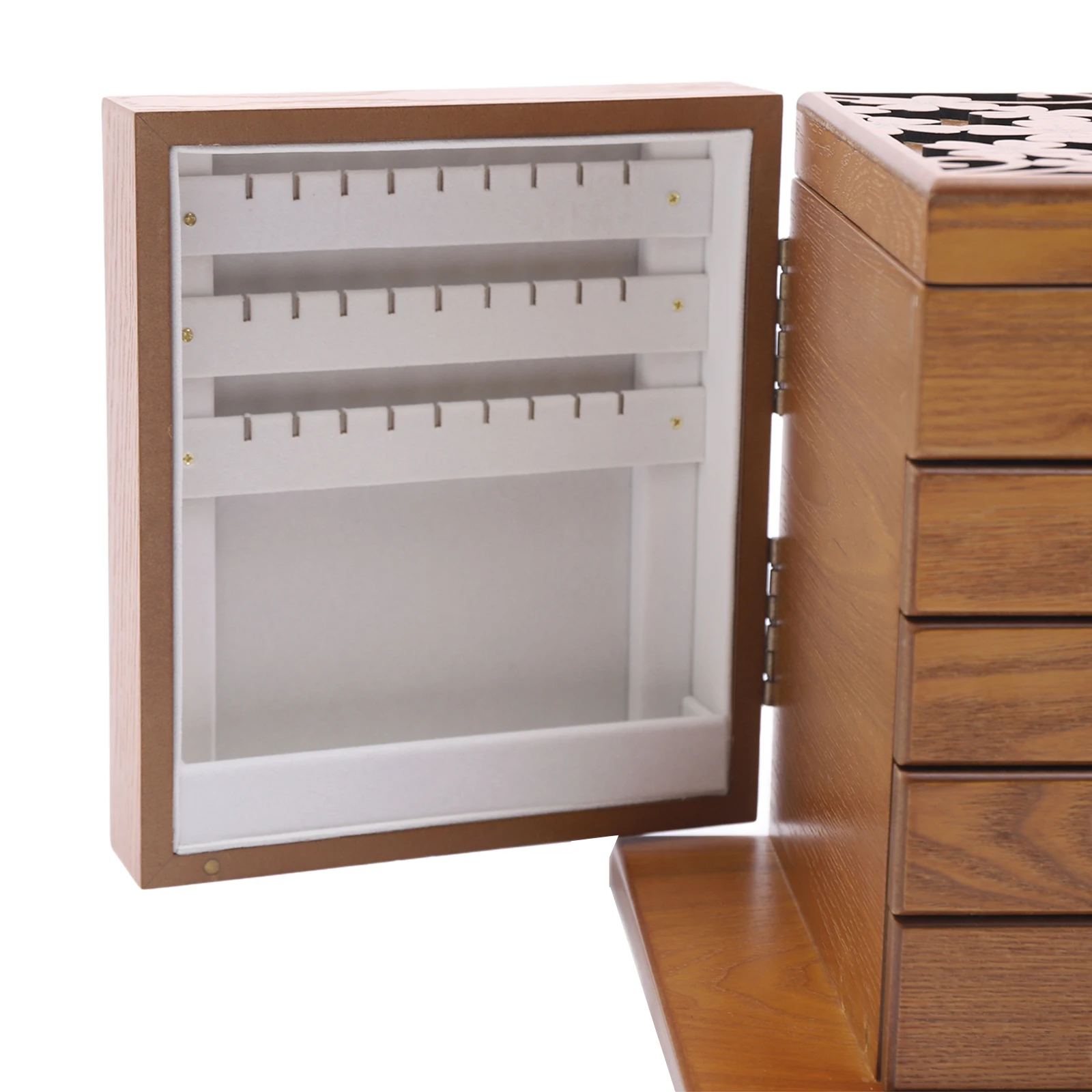 5 Tier Wooden Jewelry Box Drawers Mirror