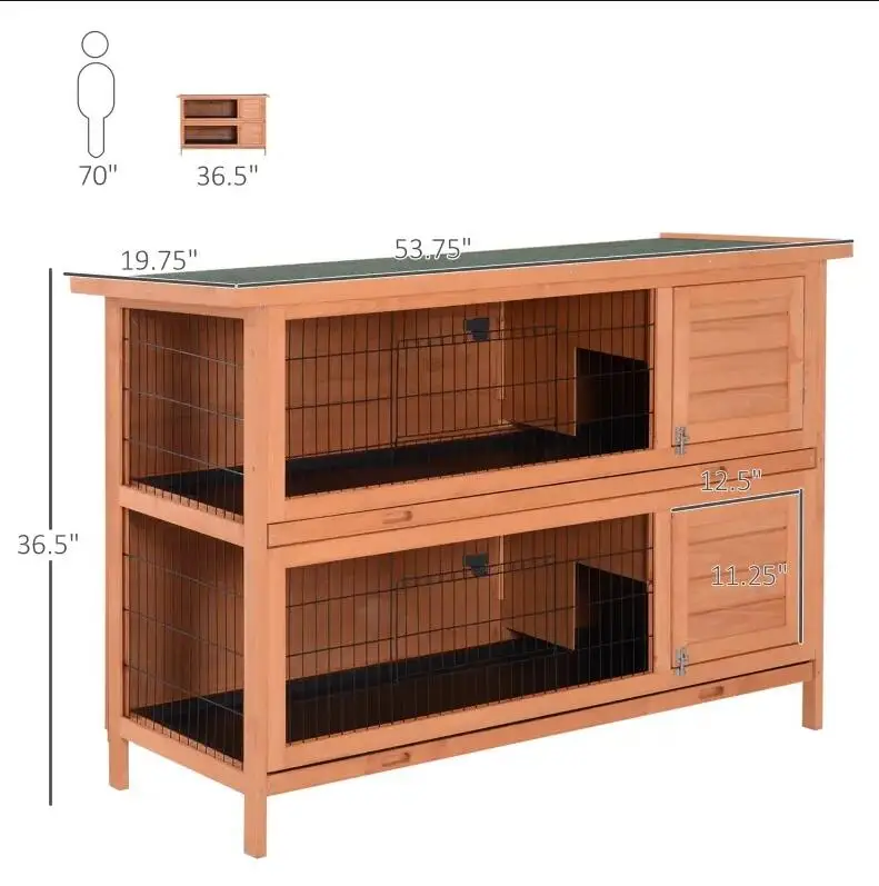 54-inch 2-Story Large Rabbit Hutch Wooden Pet House