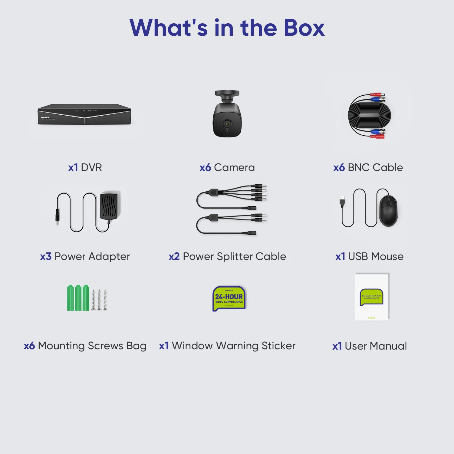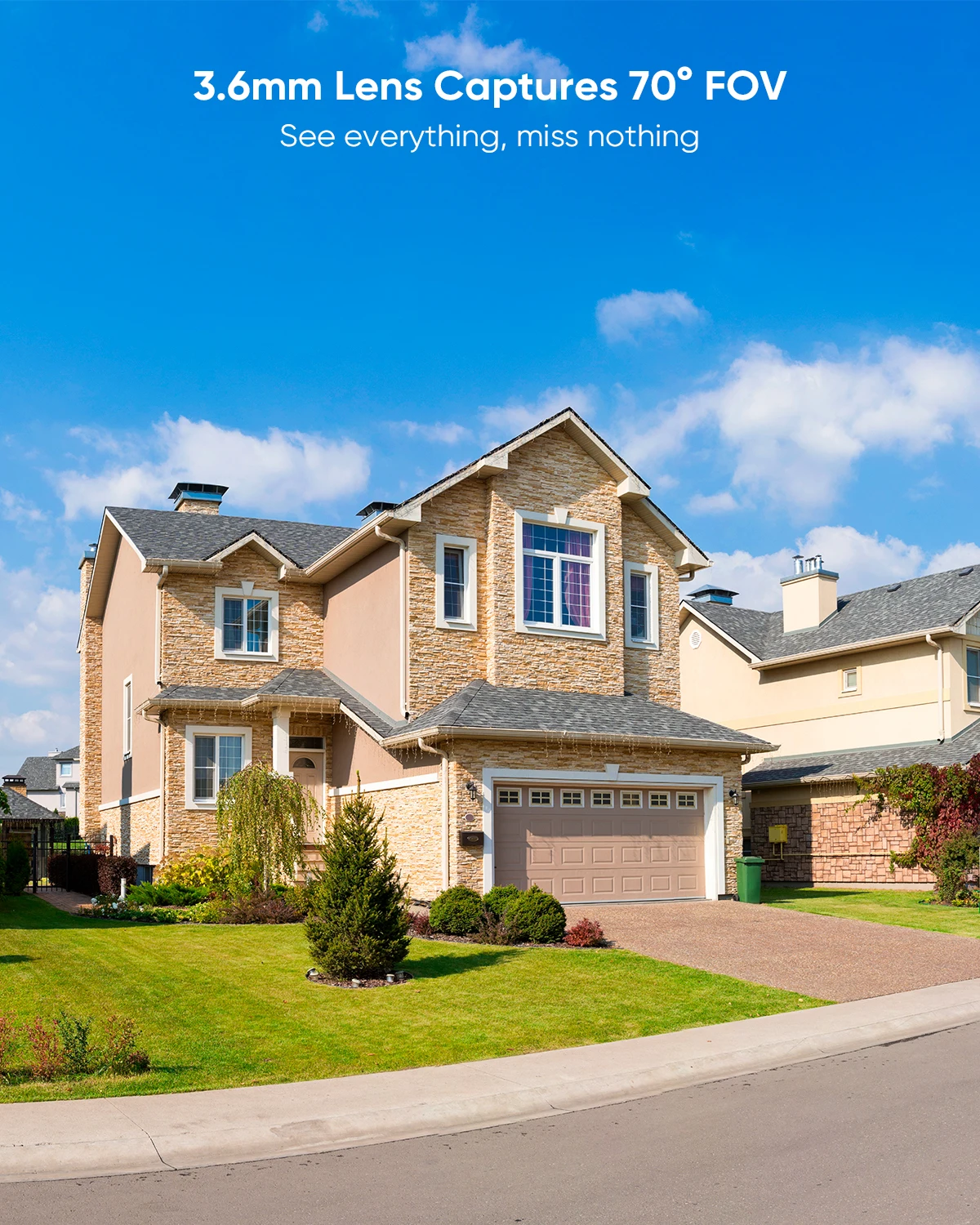 3.6 mm lens is perfect for covering wide-range areas. You are able to monitor your foyers, warehouses, front or back doors/yards, gardens, parking lots, etc. with just a camera.