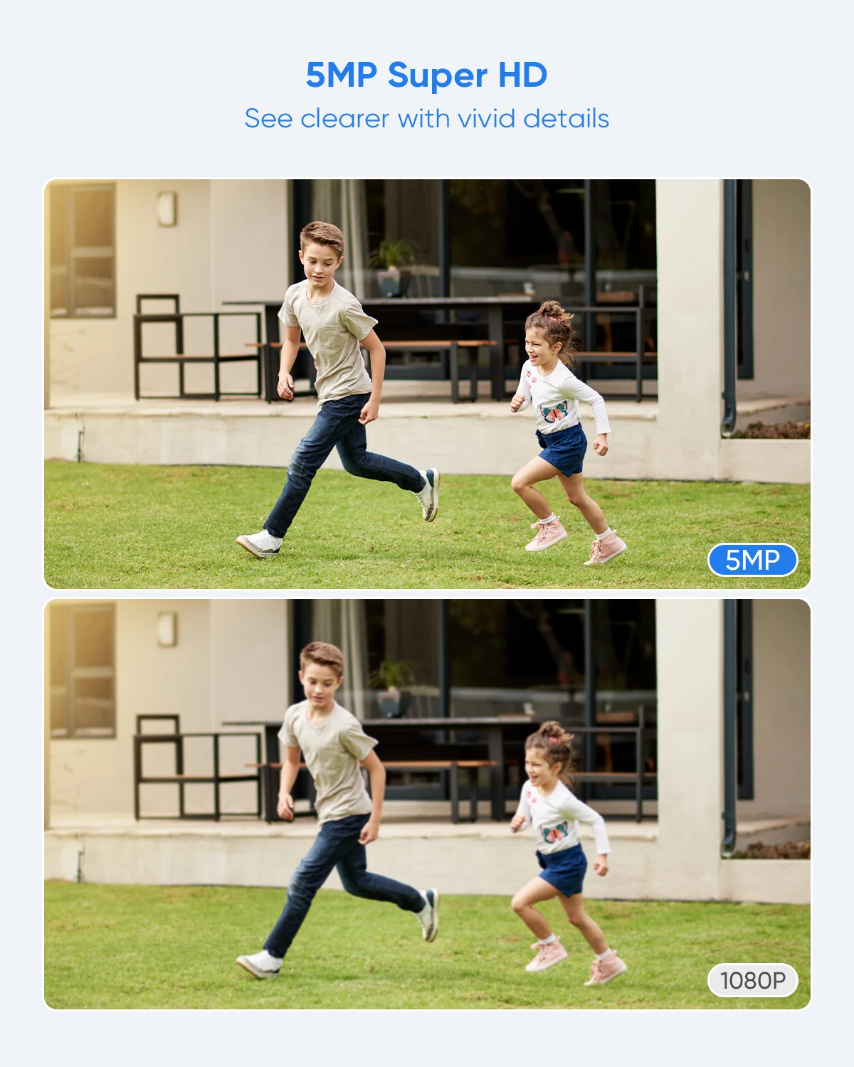 The HD-TVI wired security camera captures 5MP Super HD footages in all conditions, providing an upgrade image quality from 720p or 1080p surveillance cameras.