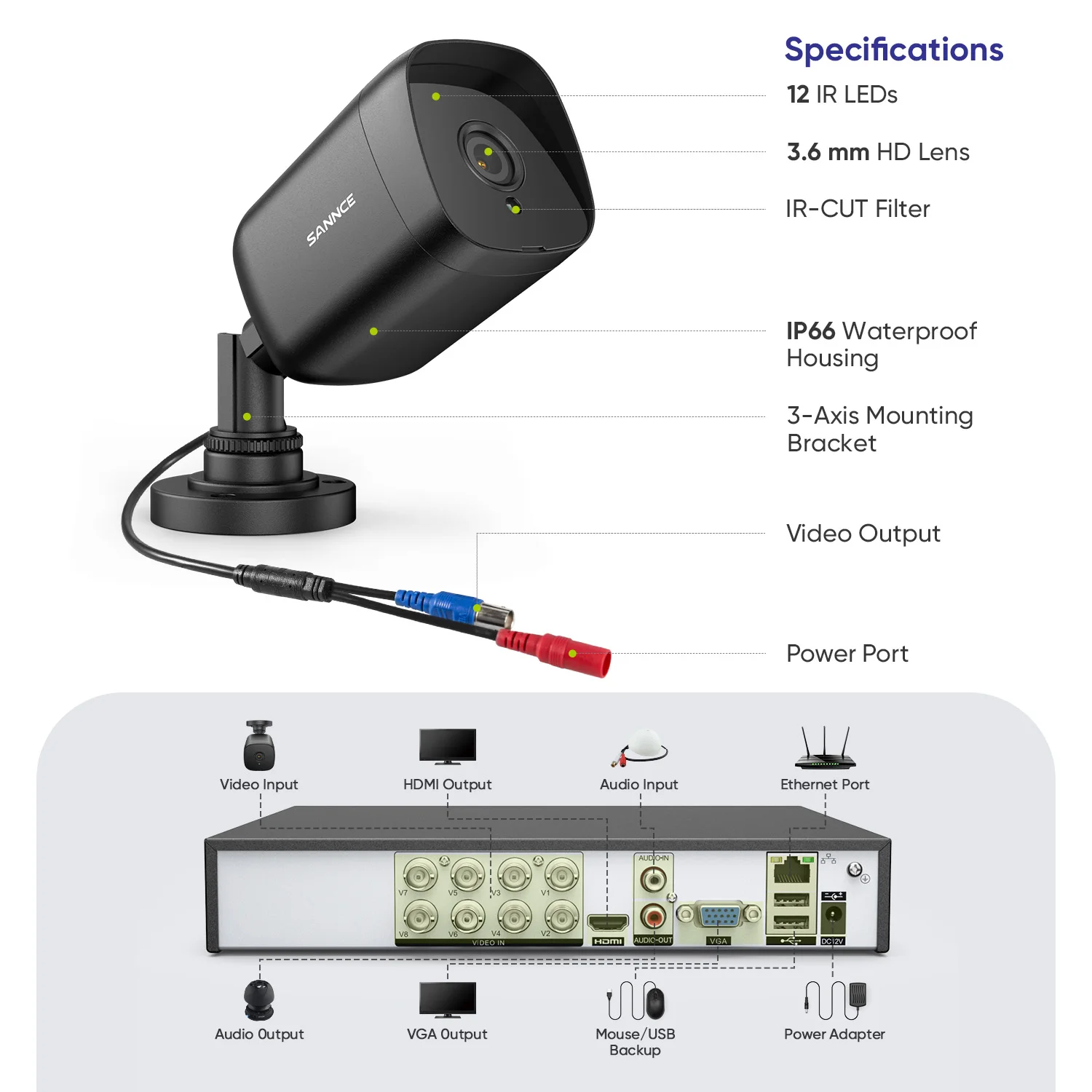 5MP SANNCE CCTV Kit 8CH DVR IR Night Vision