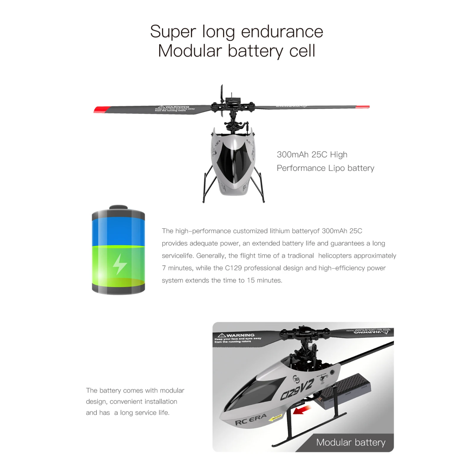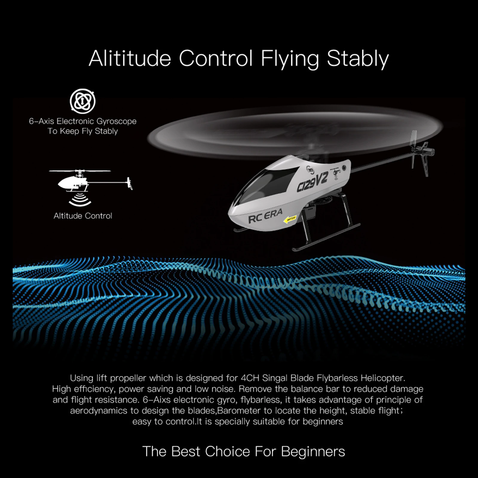 - Functionality: Equipped with 6G mode and a 6-axis gyroscope for stable flight, making it ideal for beginners. Other features include a 4-channel remote controller, low voltage alarm, locked rotor protection, out-of-control protection, rudder size conversion, one-button takeoff, and landing.