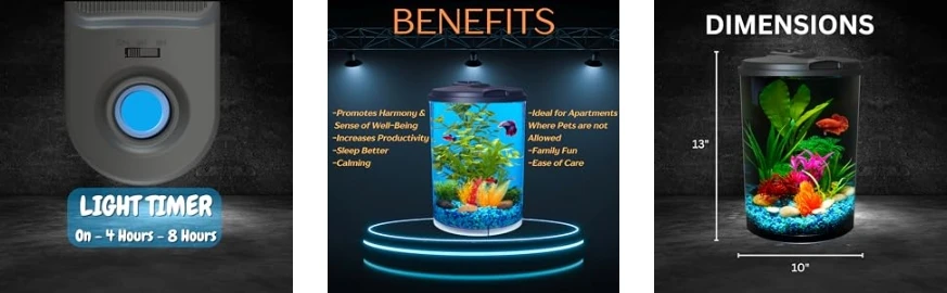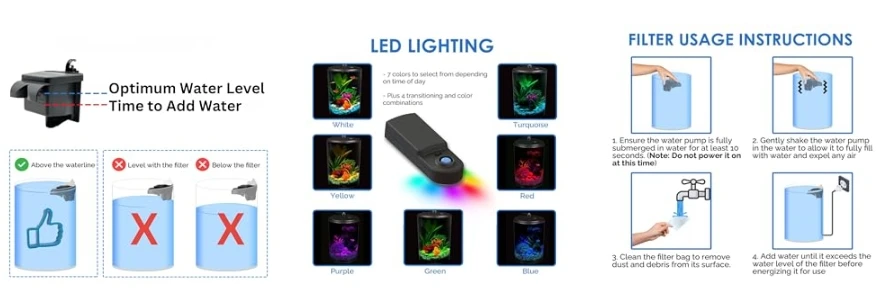 Dazzling Colors: Energy-efficient LED lighting with seven dazzling color selections to brightly illuminate your fish. Choose from: