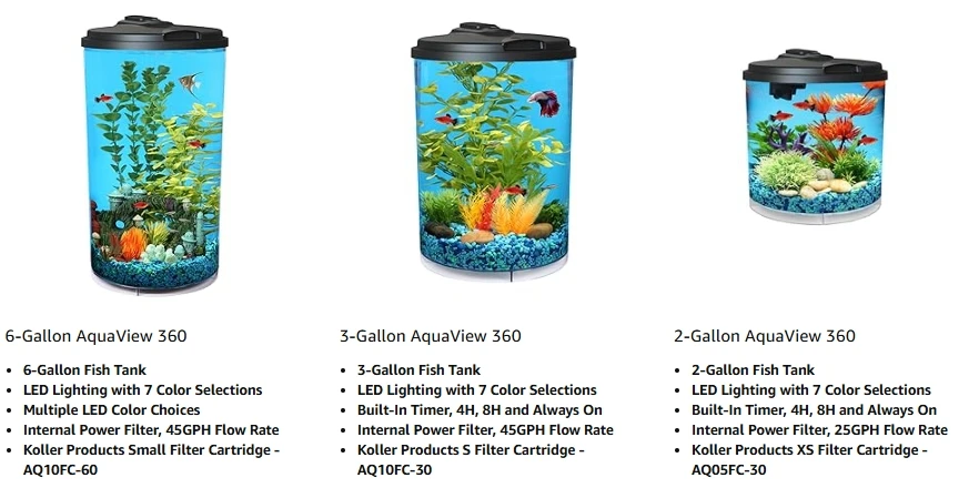 6-Gallon 360 Aquarium Kit with LED and Filter