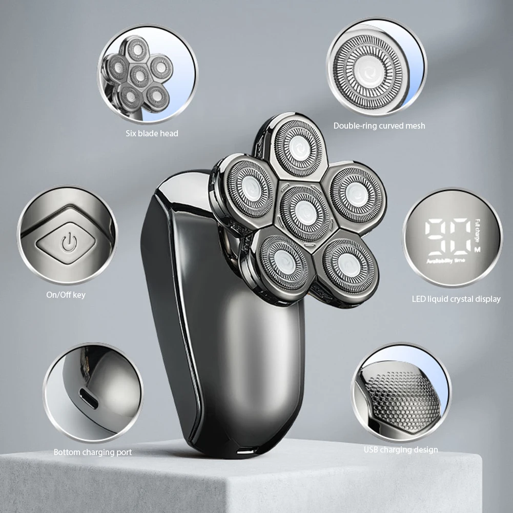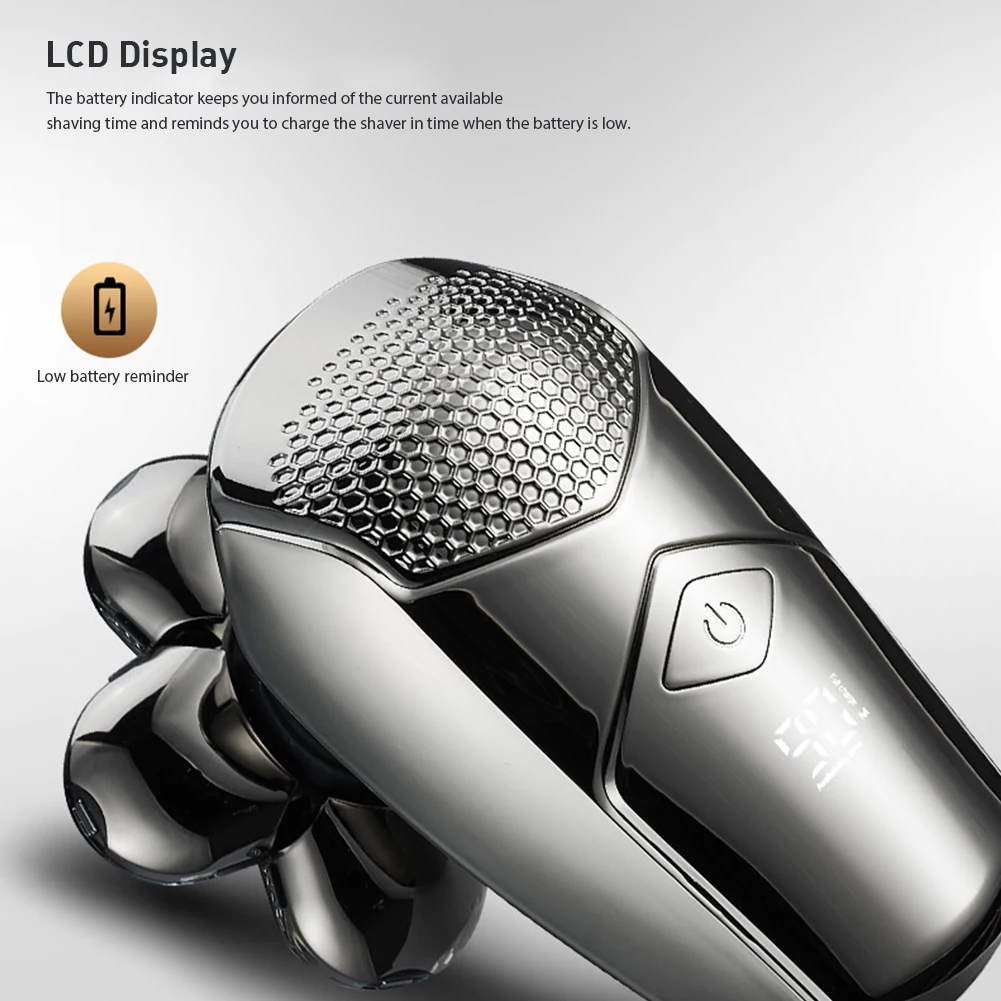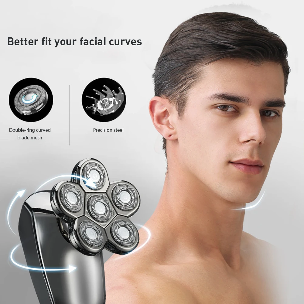 - Gentle and Close Shaving: Features 6D rotating head razors with 6 independent heads that follow the contours of your head, face, neck, and jawline for a comfortable shaving experience.