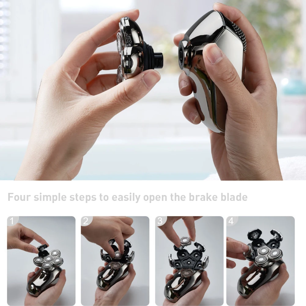 - Waterproof and Wet/Dry Shaving: 100% waterproof, allowing for both dry and wet shaving. Using foam or gel is recommended for a more comfortable shave. The shaver can be opened to rinse shaving heads under the faucet for easy cleaning.