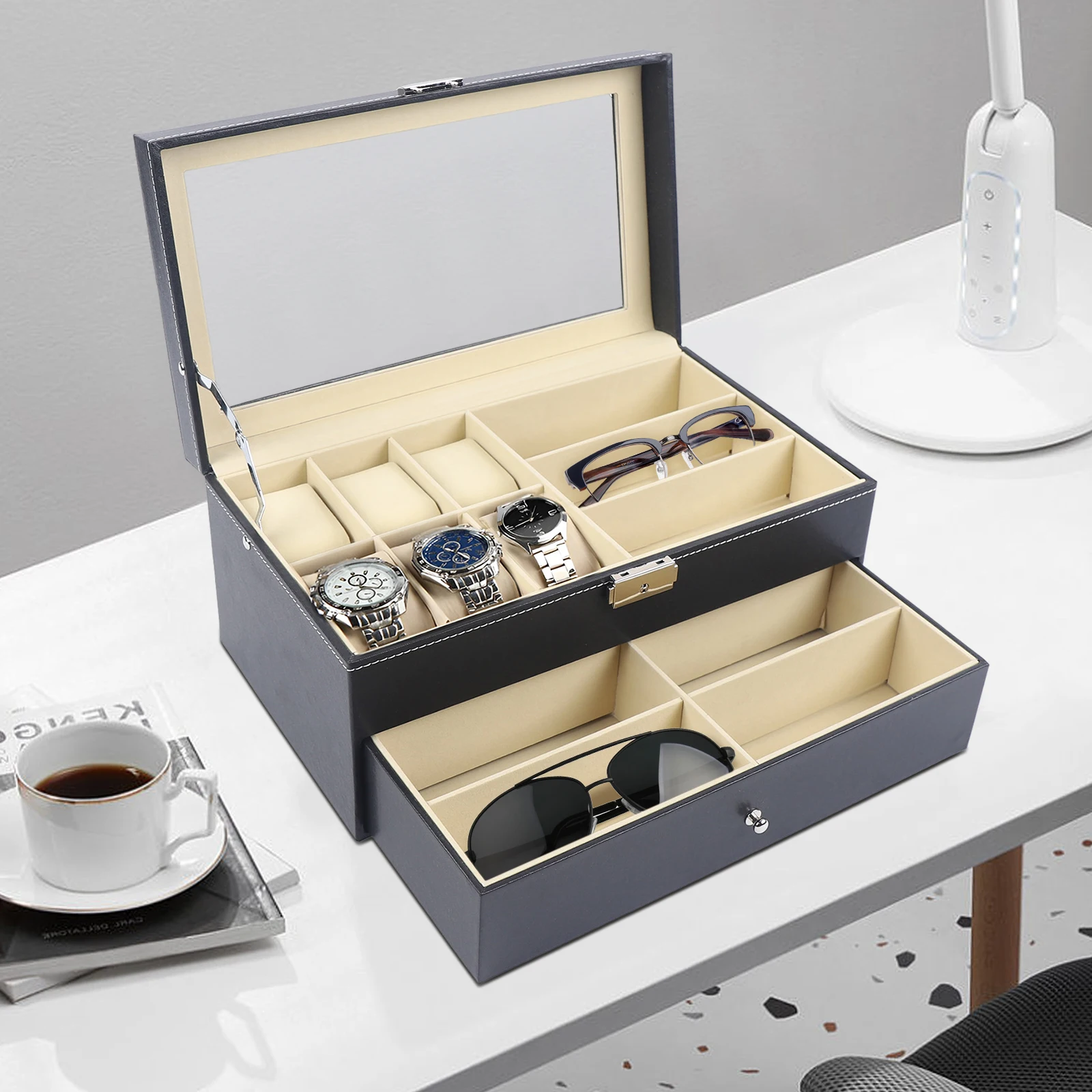 6-Slot Watch Box and Eyeglass Storage Organizer