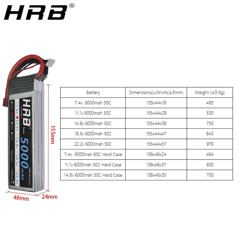 6000mAh HRB Lipo Battery 2-6S 50C for RC Models