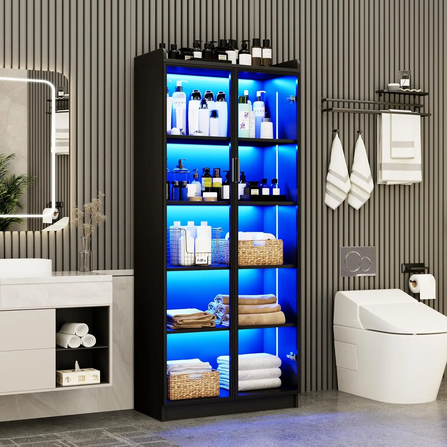 Smart Sensor LED Light: This LED display cabinet includes three light modes: blue, white, and yellow. The light turns on automatically when someone approaches and turns off after leaving, helping improve visibility while also saving energy.
