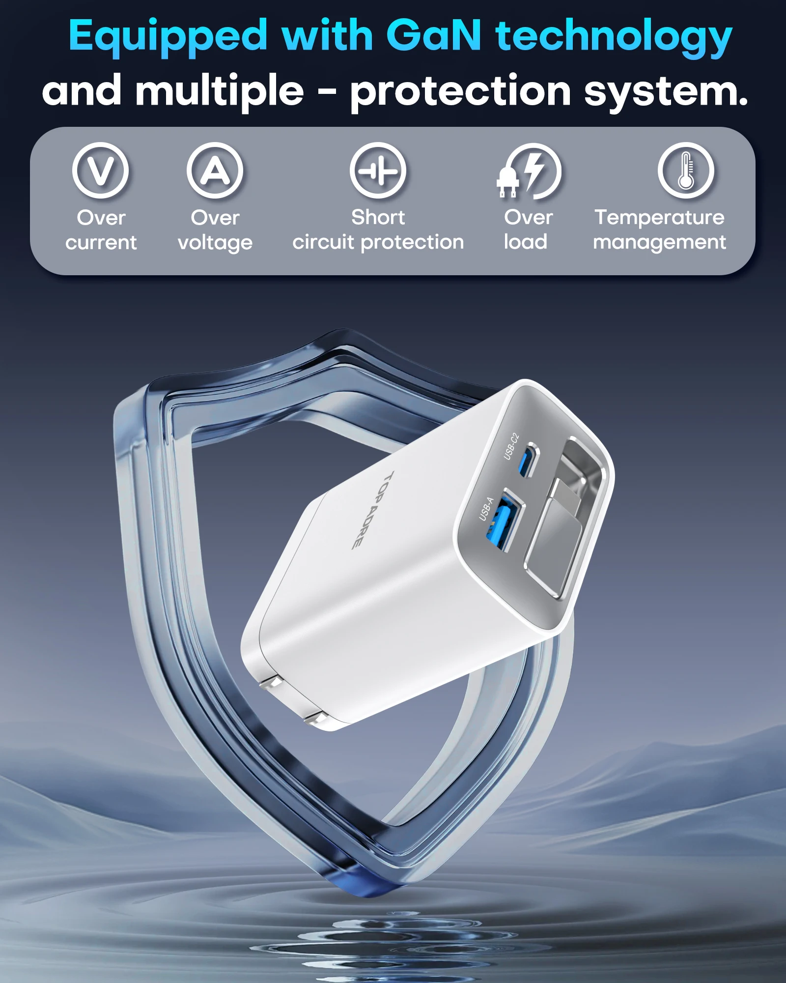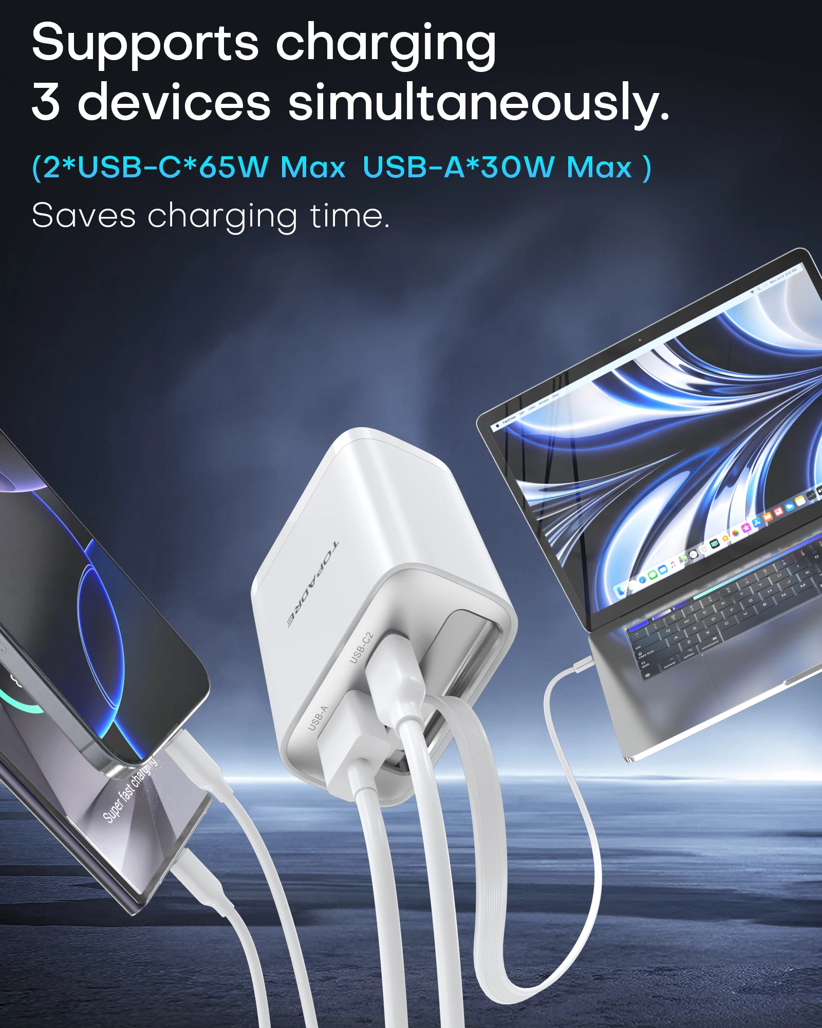 The TOPADRE 65W Retractable USB-C Travel Charger is built for travel, work, and everyday charging. Its compact design helps keep your desk, bag, or nightstand neat while giving you fast and reliable power from one convenient charger.