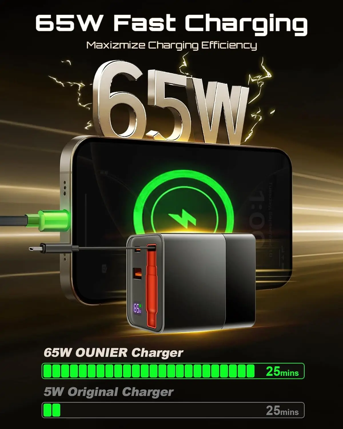- 65W Fast Charging: Supports PD and PPS charging for fast, efficient power delivery.