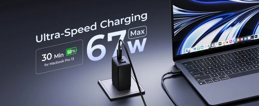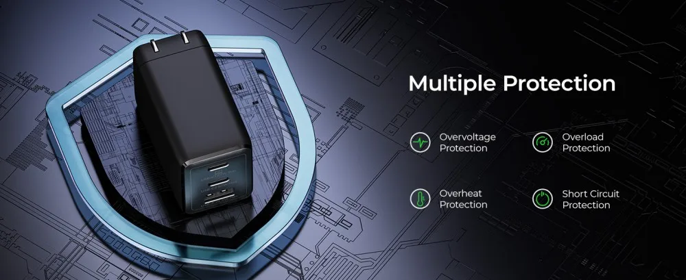 Built with Gallium Nitride III technology and thermal safeguards, this charger is designed to run cooler than traditional chargers. It also includes protection features such as voltage and current monitoring, short-circuit protection, overload auto-shutdown, and a flame-retardant casing.
