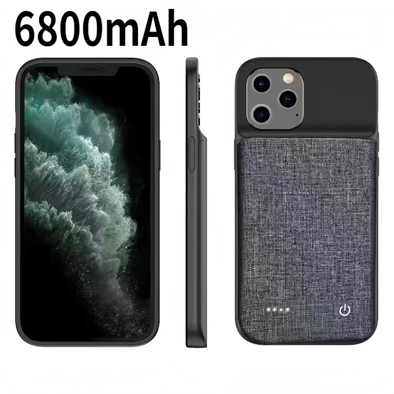 This portable battery charger case is designed to give your iPhone added backup power while also helping protect the back of the phone during daily use. The source title lists compatibility for iPhone 11, 12, 13, 14, and 15 series models, including options such as Pro Max, XR, XS Max, and Mini. Please verify the exact phone model before purchase.