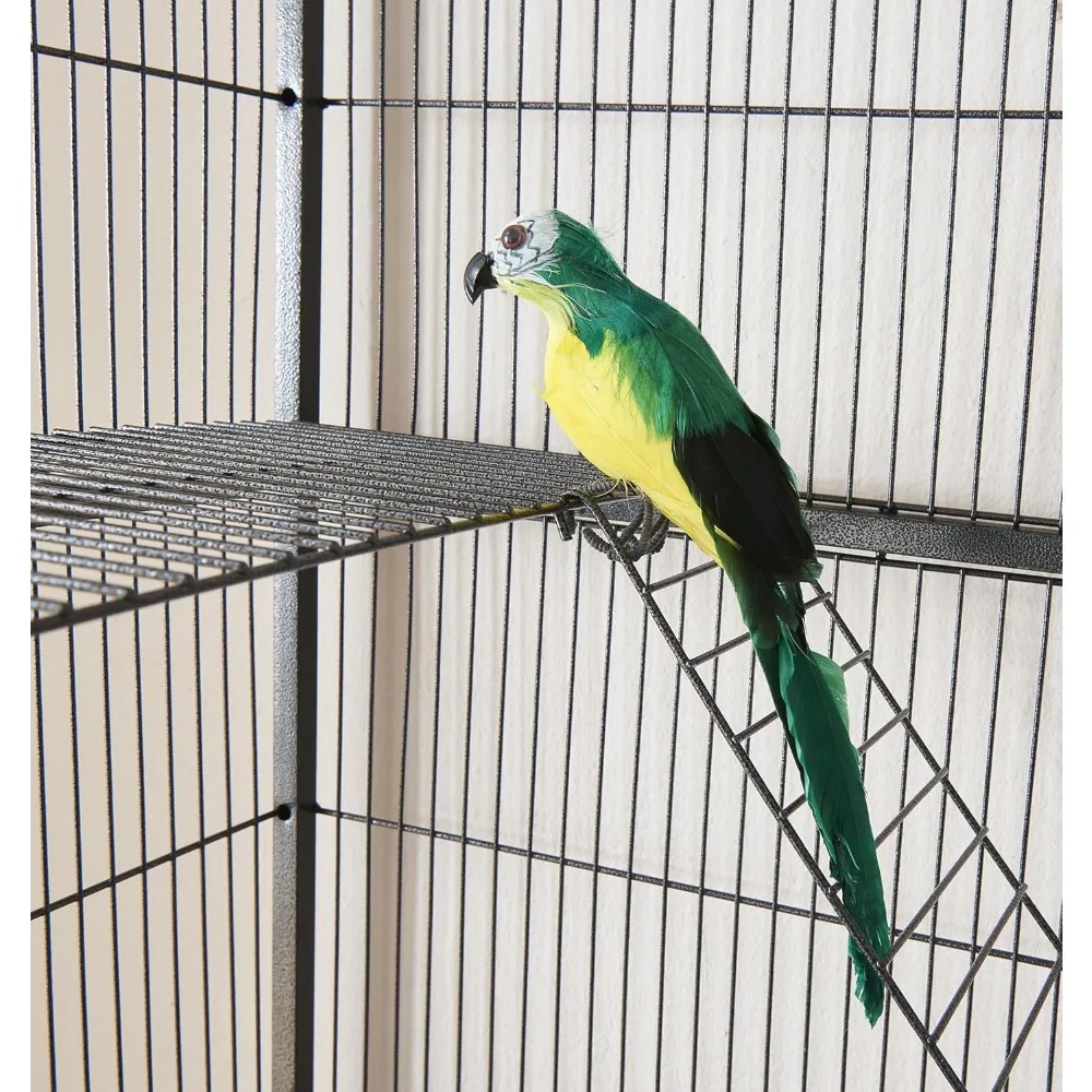 - Solid Construction: With the waterproof finished metal cage and the bottom slide-out tray, cleaning this cage is easy for pet parents. The pull-out grate at the bottom prevents birds from walking in their excrement.