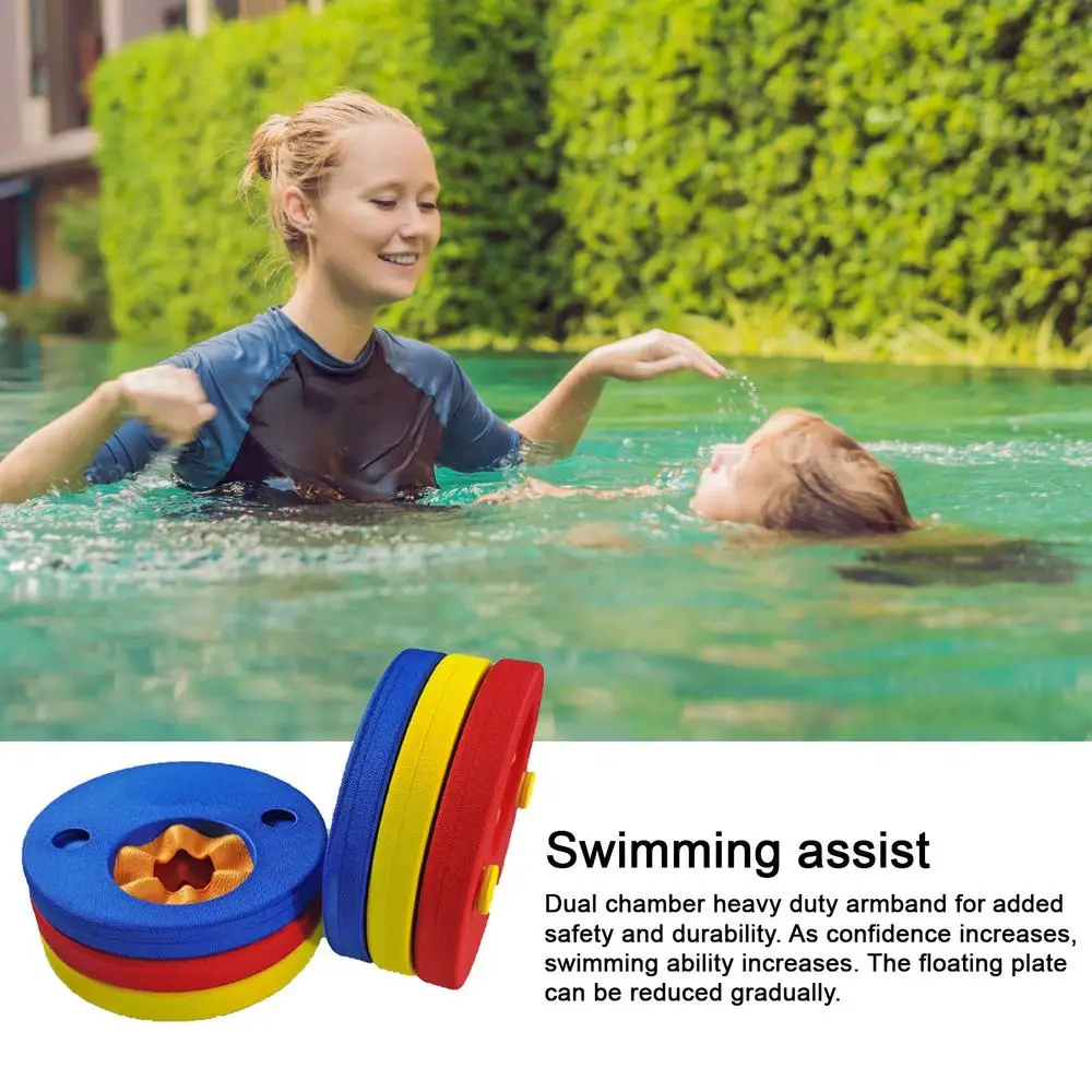 - Practical Design: Features progressive arm support to build swimming skills and a double-chamber, heavy-duty construction for durability and safety. Floating discs can be removed gradually as skills improve.