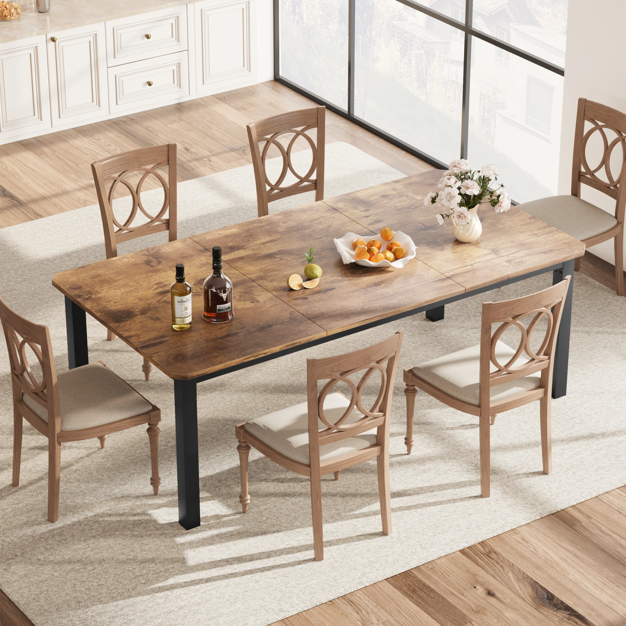 - Sturdy and durable: Made from high-density MDF boards and upgraded thick metal legs for excellent stability and a solid dining experience. The 6-leg metal frame has a matte black finish that adds an elegant touch while being water and rust-resistant for long-lasting use.