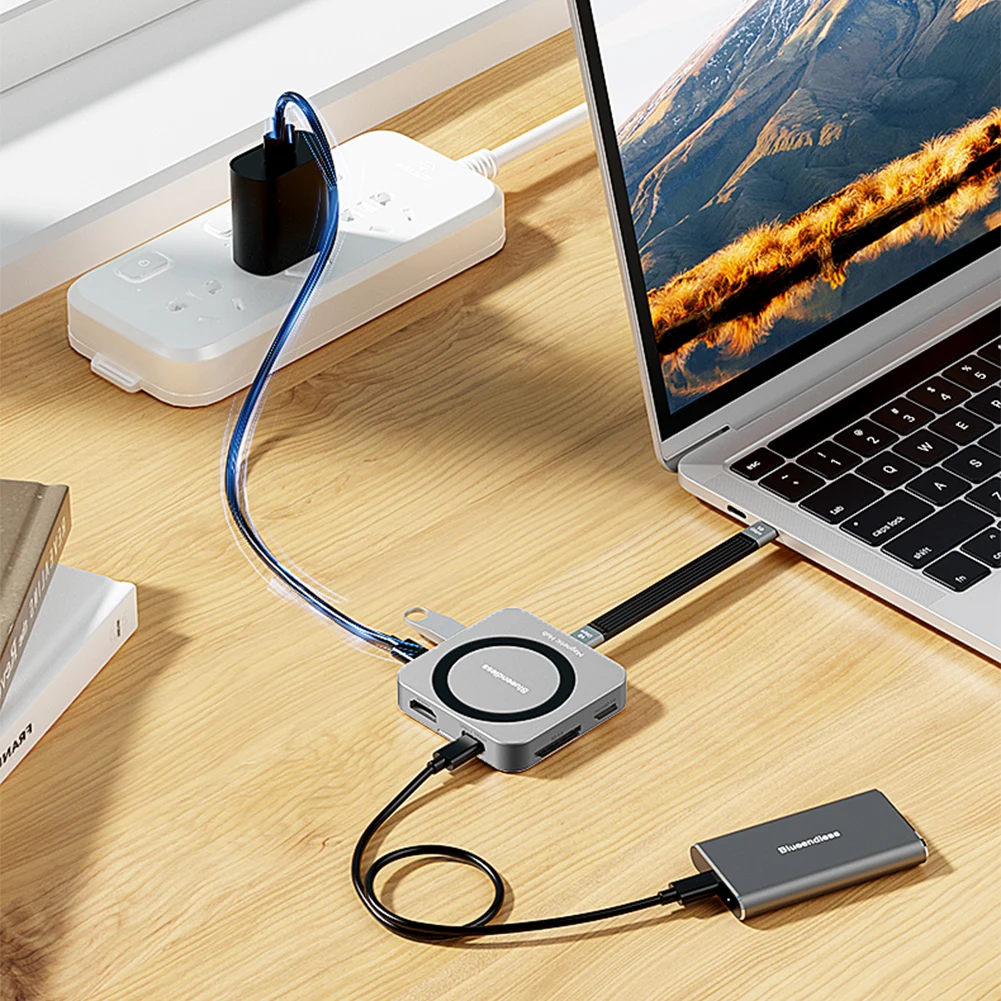 - Magnetic Secure Attachment: Built-in magnetic structure keeps the USB-C hub firmly attached to your phone, compatible with MagSafe phone cases, regular phone cases, or no case at all.