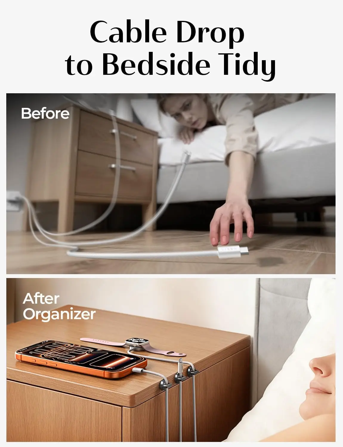 This 8-piece set gives you the flexibility to organize multiple areas throughout your home, vehicle, or office. Whether you are setting up a cleaner workstation, improving bedside charging access, or keeping cables under control in the car, this cable holder set offers a practical and modern solution. The residue-free adhesive design also helps protect surfaces while giving you a dependable cable management option.