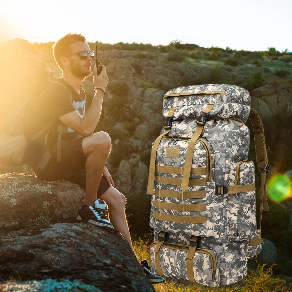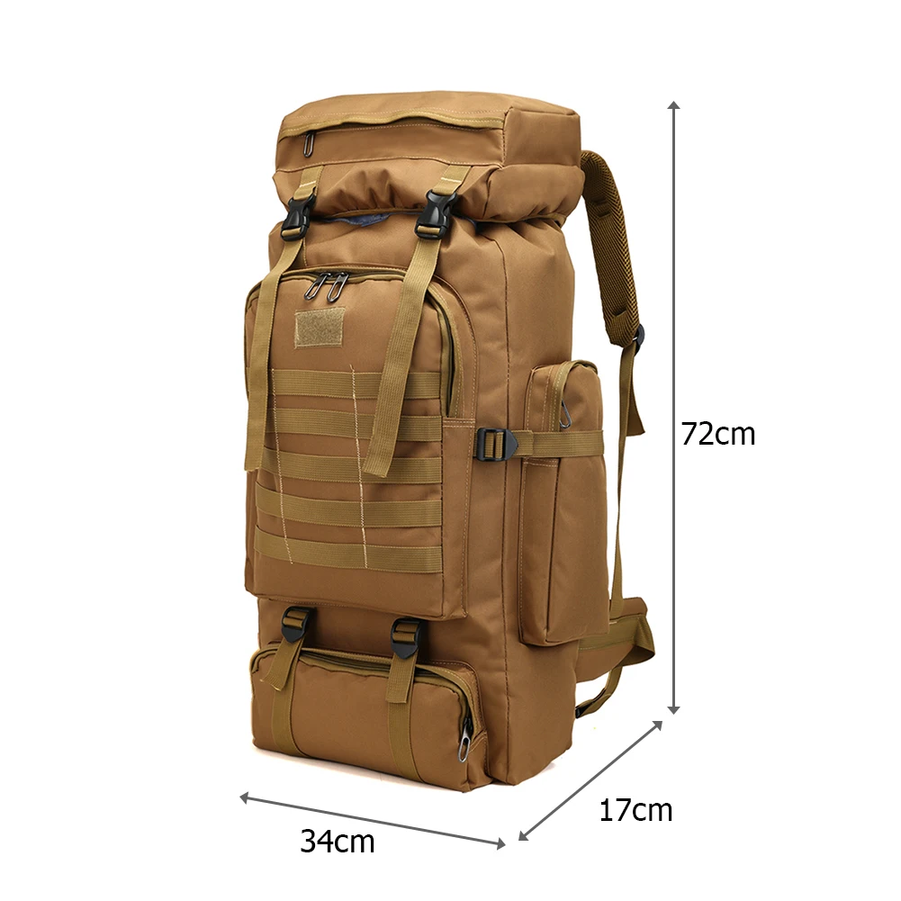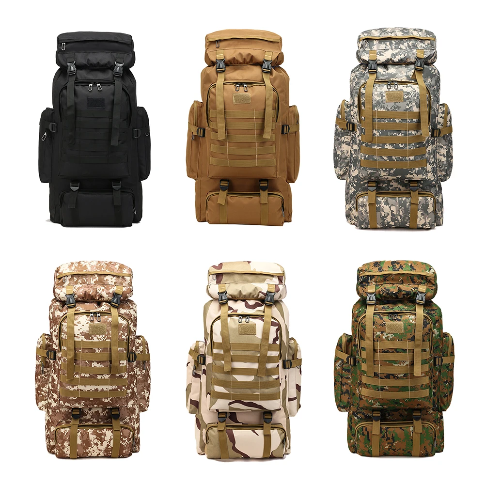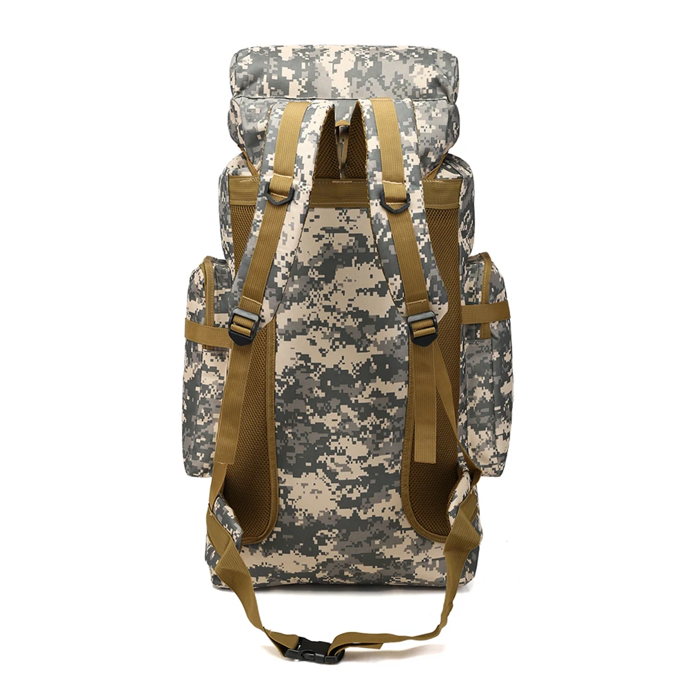 - Name: 80 liters large capacity outdoor camouflage backpack