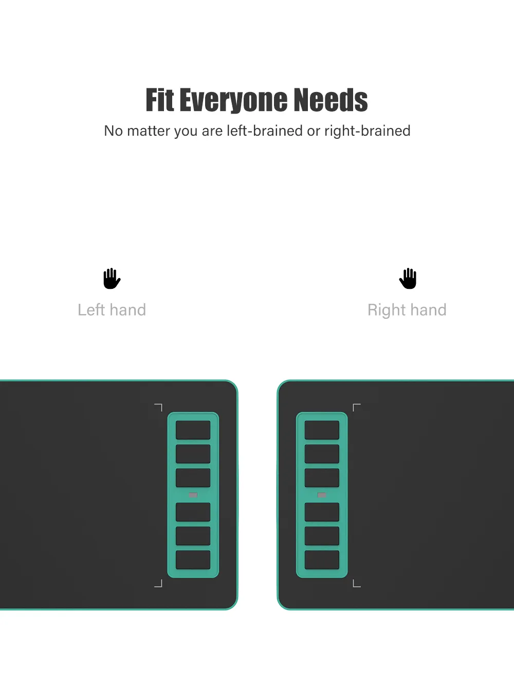 It works for both left and right-handed users. No matter if you are left-brained or right-brained.