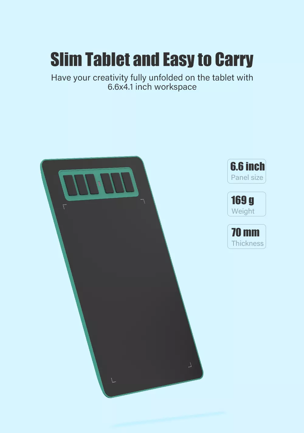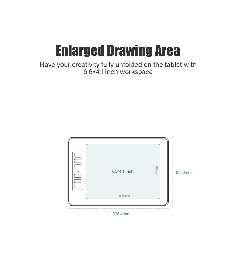 Have your creativity fully unfolded on the tablet with a 6.6×4.1inch workspace