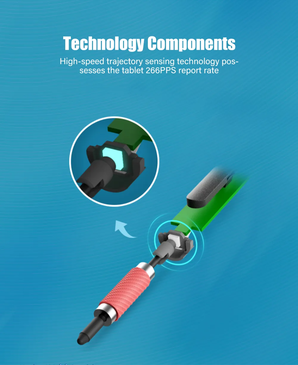 The high-speed trajectory sensing technology application possesses the tablet 266 PPS report rate, ensuring a quick response to any pen movement.