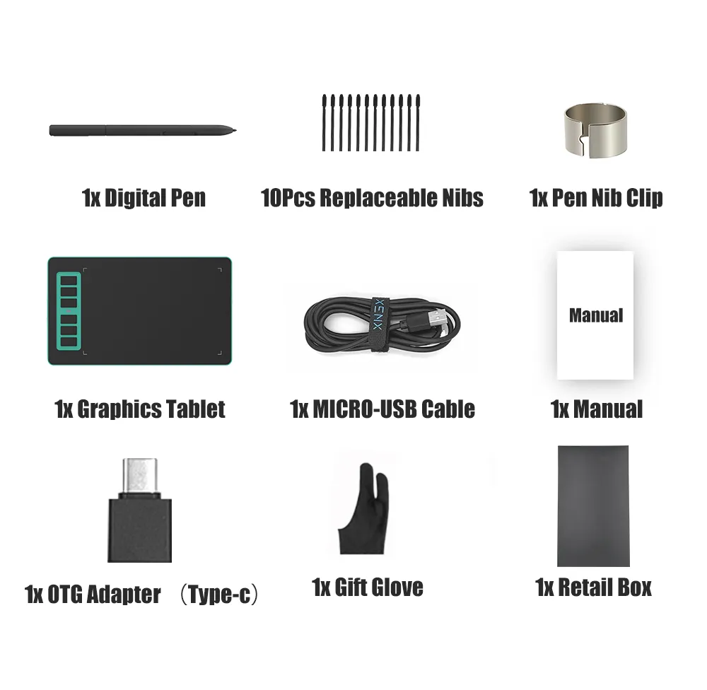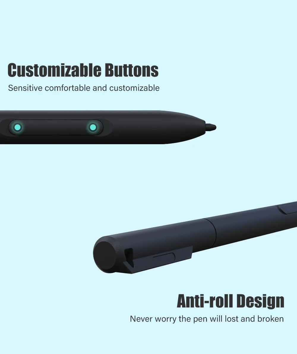 The battery-free pen features 8192 levels of pressure sensitivity, 2560LPI pen resolution, and virtually no lag, providing precision and control. It is also battery-free, so there is no need for charging anymore. Comes with extra ten pen nibs in the package
