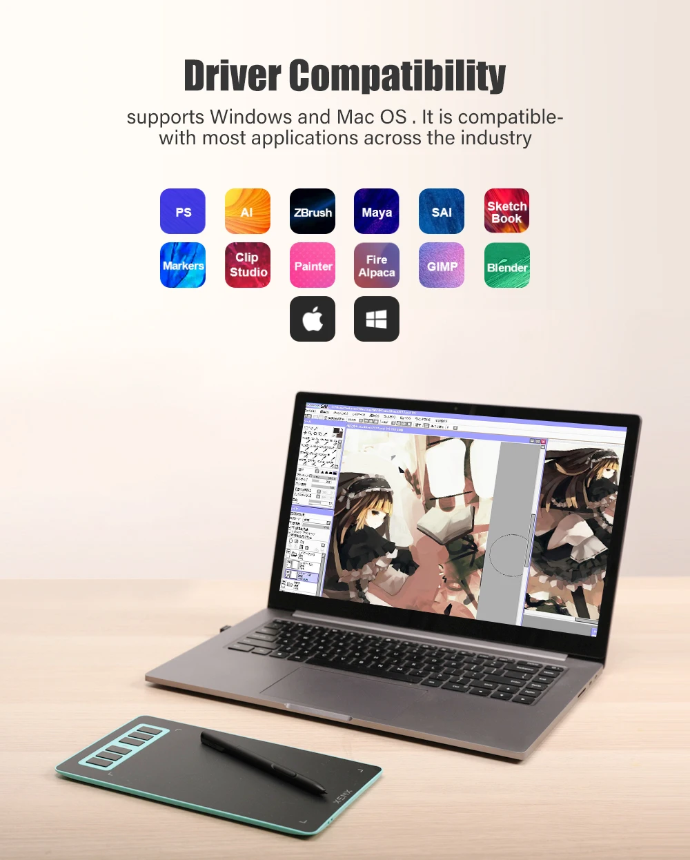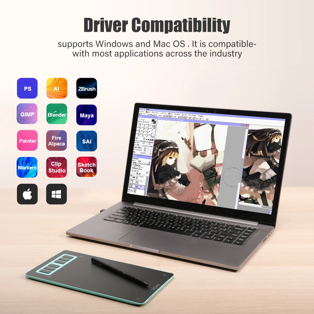 P1 supports Windows Android, and Mac OS does not support iOS. Compatible with most drawing softwares like Adobe Photoshop, Illustrator, Clip Studio, Lightroom, Sketchbook Pro, Manga Studio, CorelPainter, FireAlpaca, OpenCanvas, Paint Tool Sai2, Krita, and so on. Synchronize with Adobe Acrobat Reader DC signature Application, satisfied with the need for a digital business signature.
