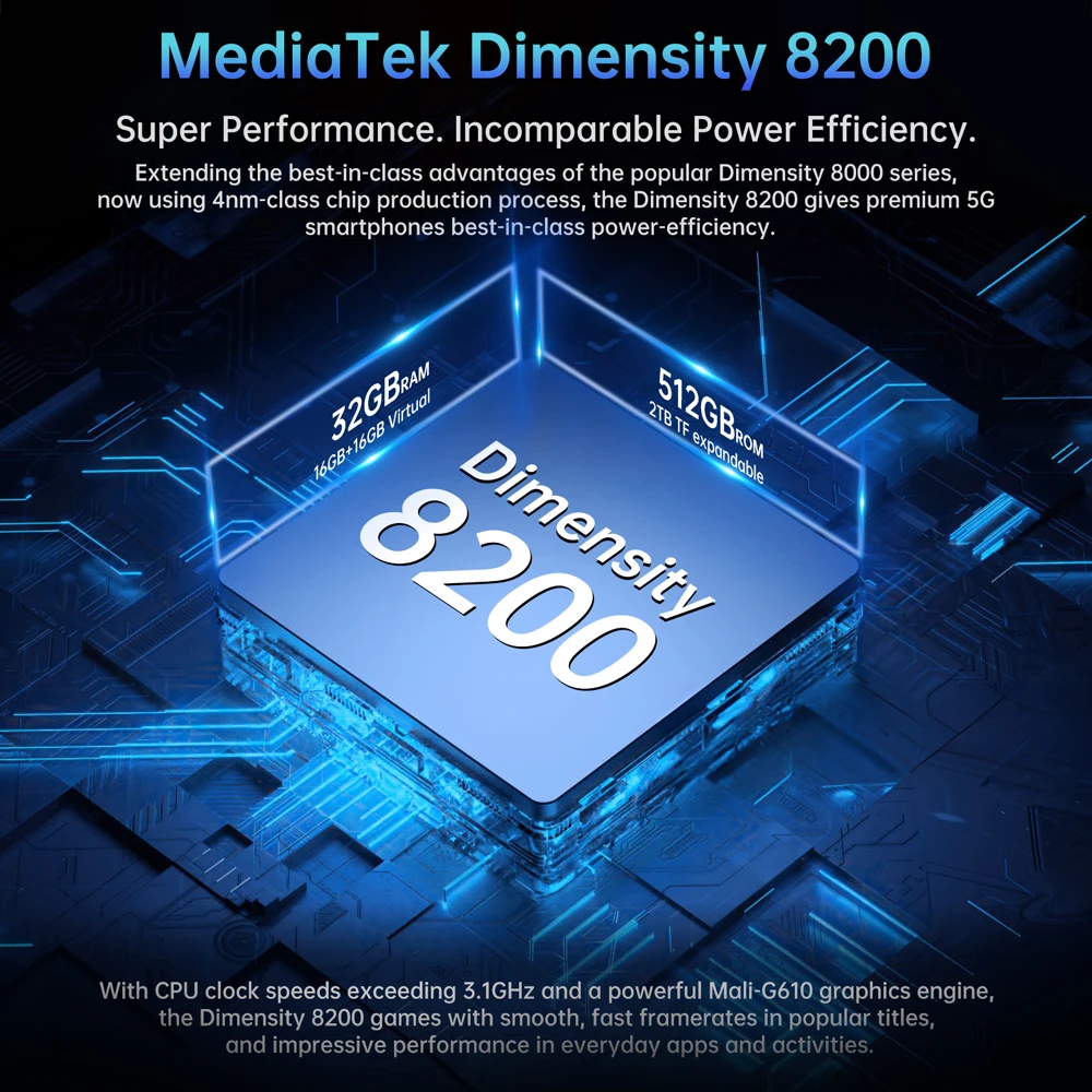 - MediaTek Dimensity 8200 processor up to 3.1GHz