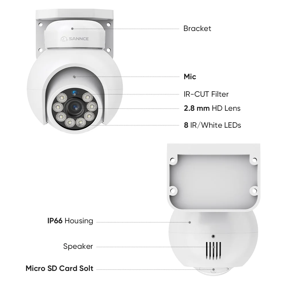 - Pan and Tilt (level: 350° & vertical: 90°)
