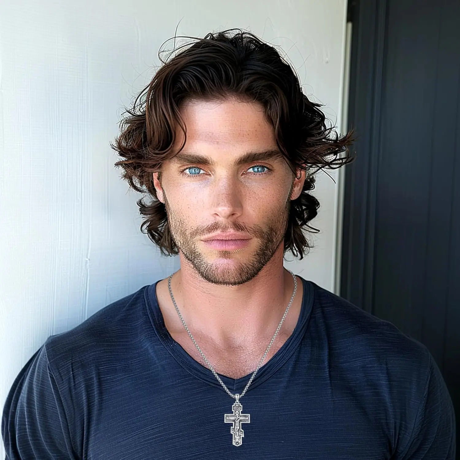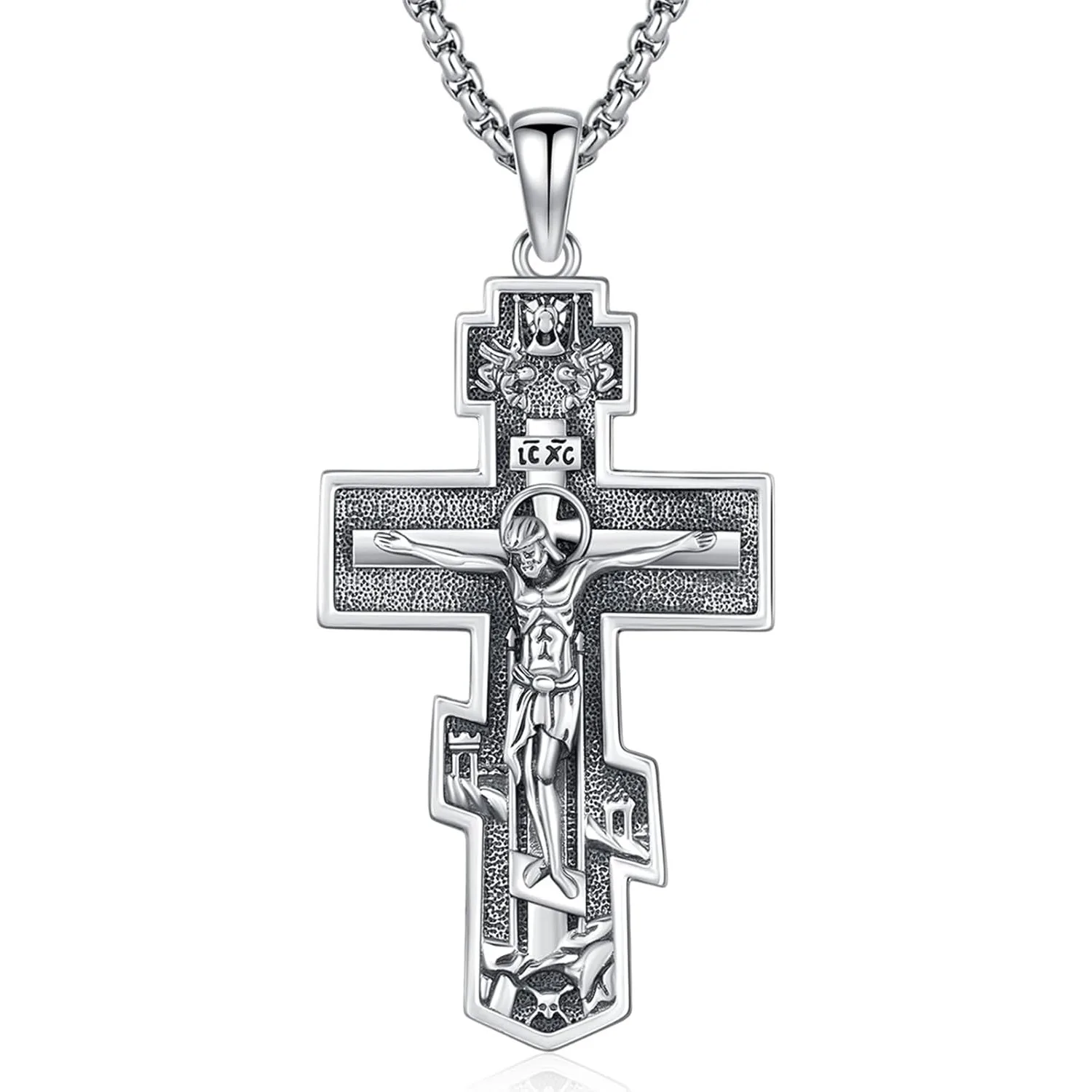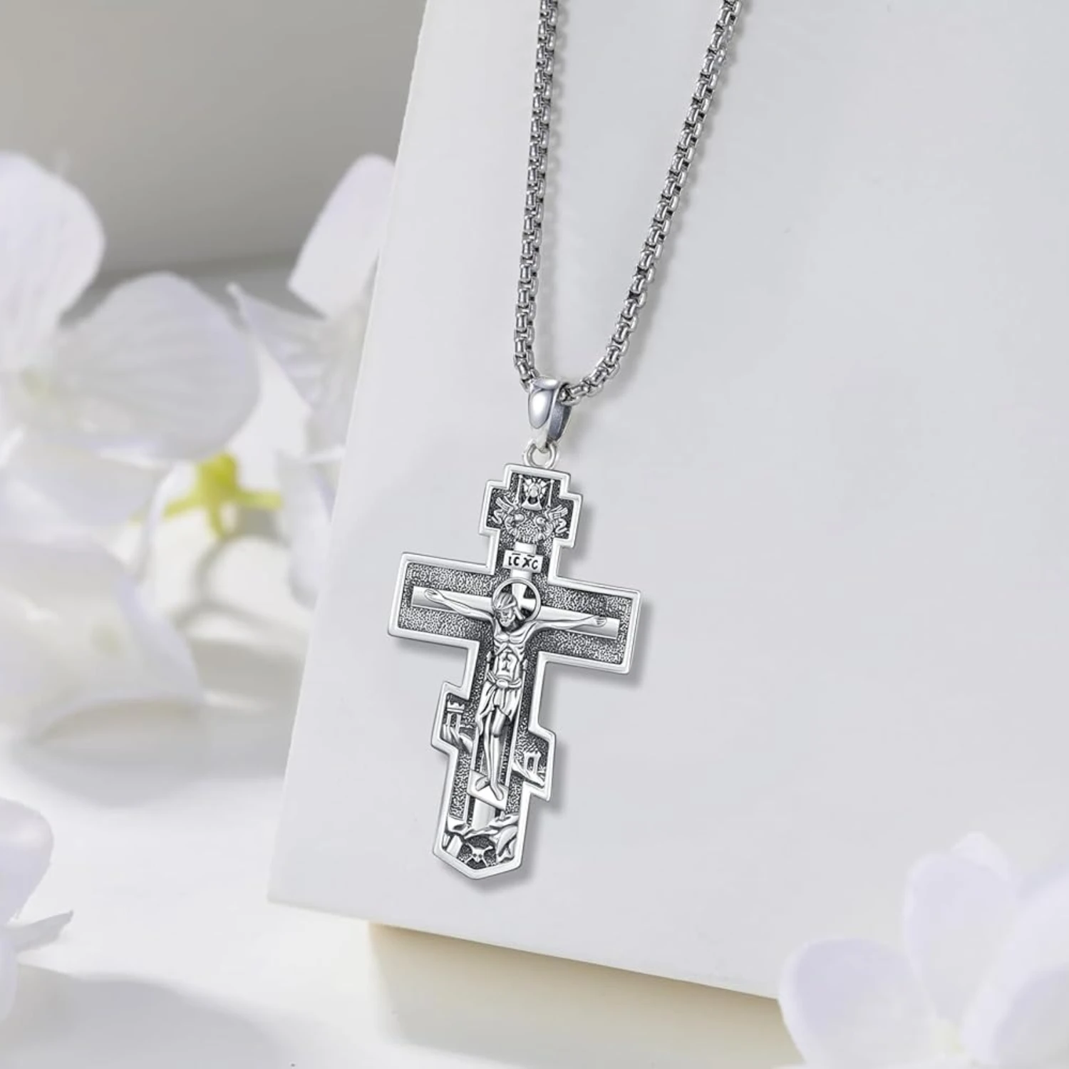- Orthodox cross necklace: The Christian cross is a sacred symbol and a timeless fashion piece. Display your faith with this vintage Jesus crucifix pendant necklace.