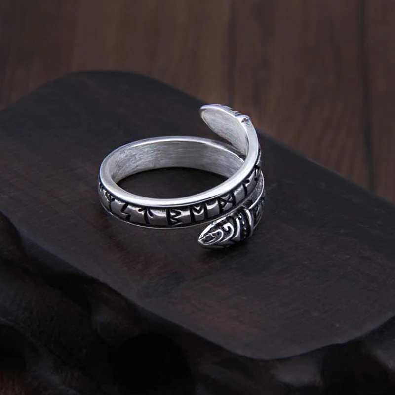 - Name: 925 Sterling Silver Viking Dragon Rune Ouroboros Ring (Adjustable) with Viking wood box
