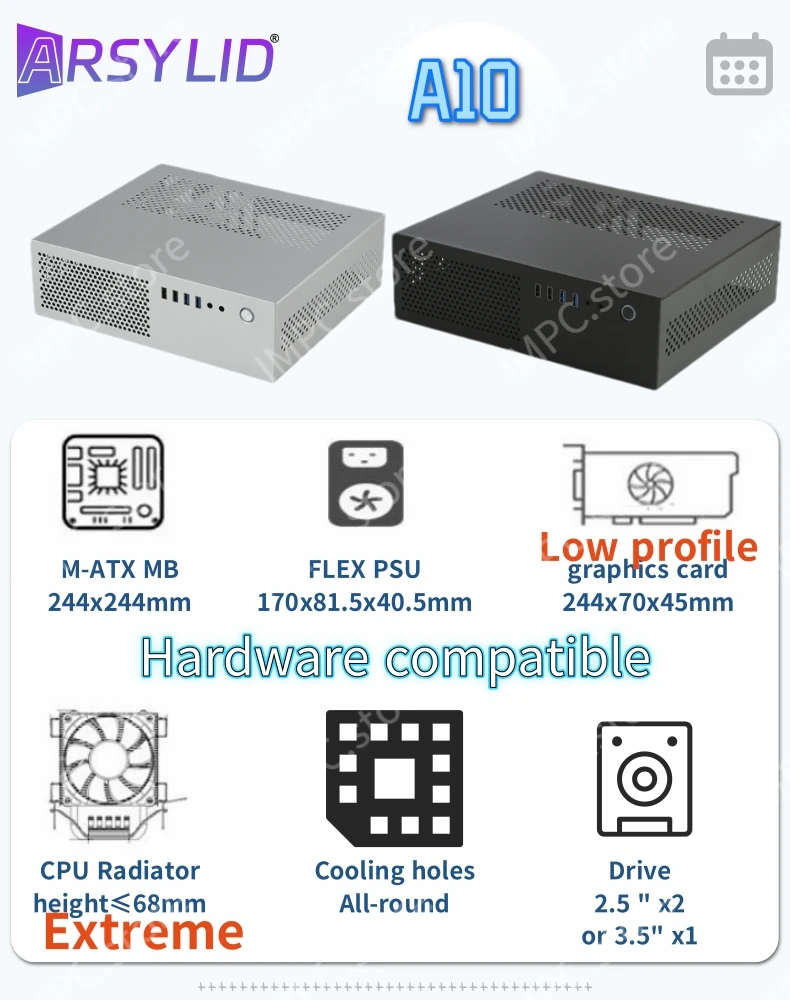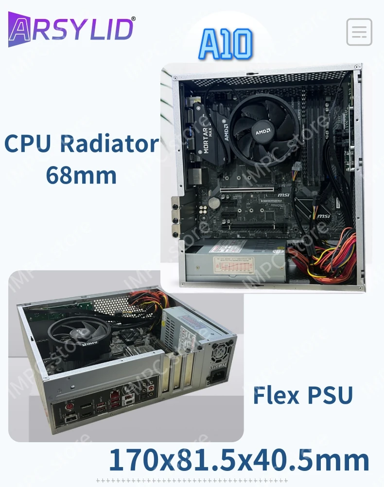 - Versatile Component Support: Compatible with M-ATX motherboards, the A10 chassis supports PCIe graphics cards, 2.5″ SSDs, and a Mini Flex PSU, offering a wide range of customization options.