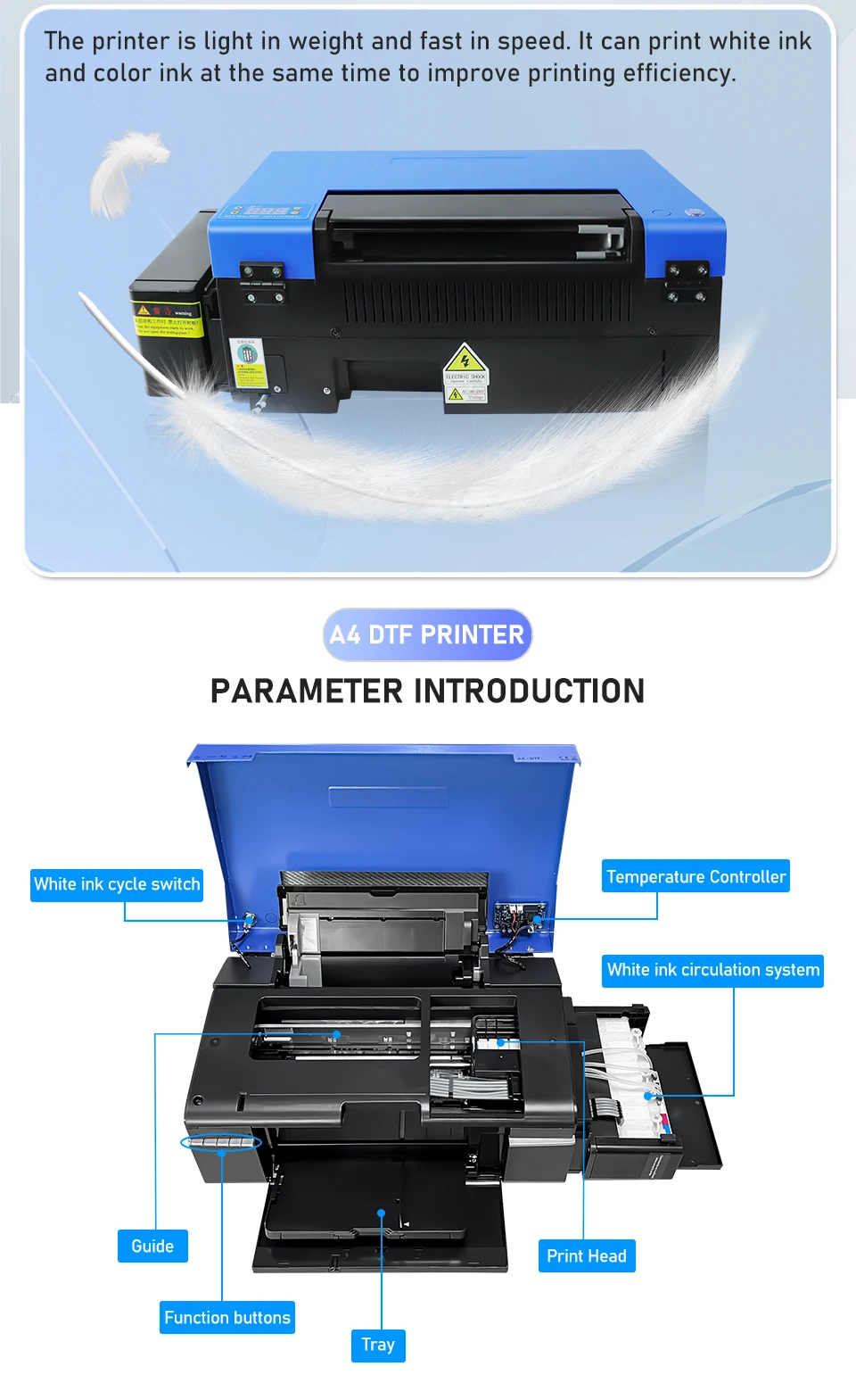 - Beginner-friendly: Lightweight and fast, capable of printing white and color ink simultaneously to improve efficiency.