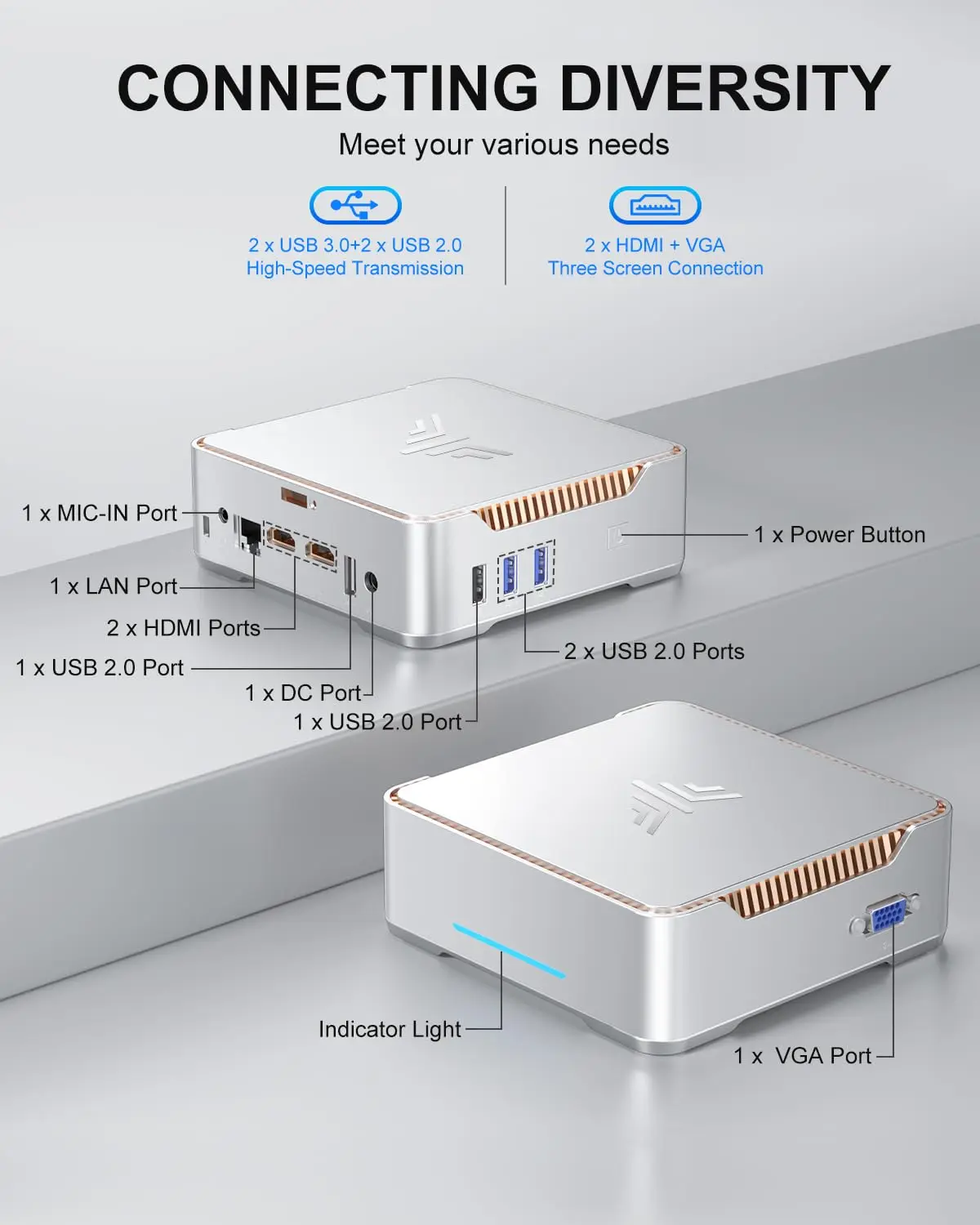 - Windows OS & Compatibility: Preloaded with a Windows operating system, this mini PC supports various applications, including office tasks, media editing, gaming, and more.